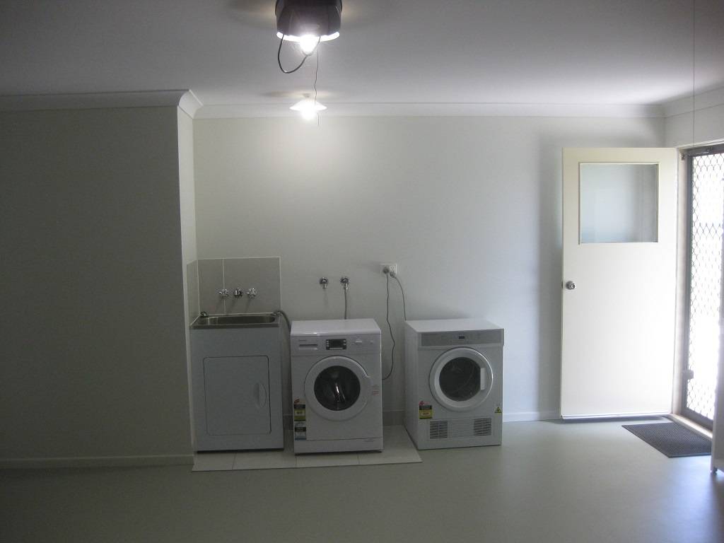 The double garage (remote controlled door) offers direct internal access plus laundry area and extra cupboard/storage space.