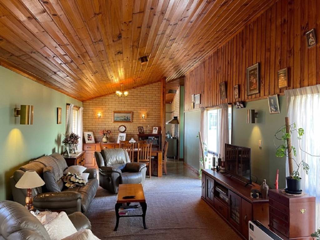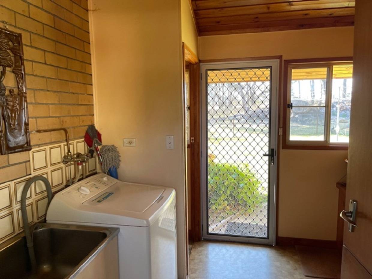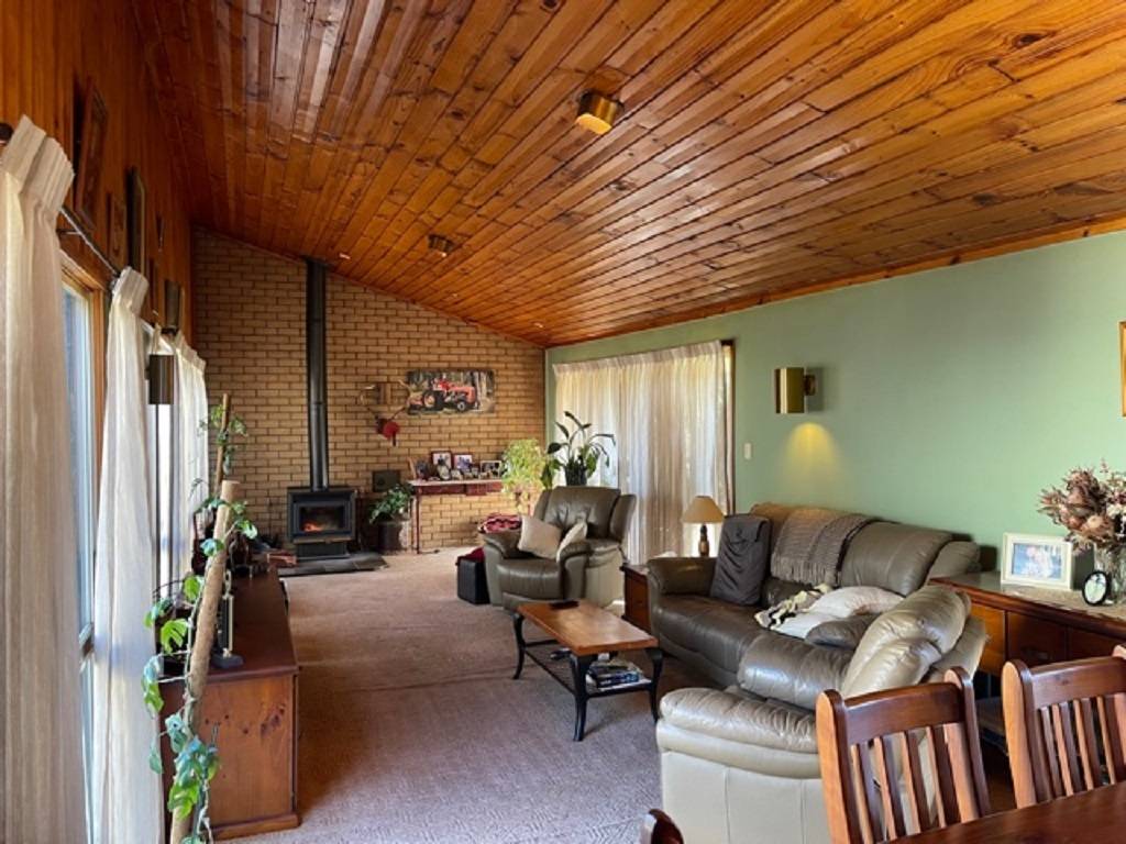 A 3 bedroom brick veneer residence is located on this property including spacious lounge dining room with wood fired heater. North East facing kitchen with 5 burner gas stove plus electric cook top. Plenty of cupboard space island bench work area and dining. Pine ceiling throughout the home. All bedrooms have builtins the main with access to bathroom. Office/tv room opening onto double carport area.