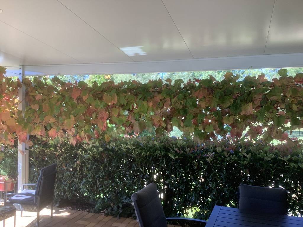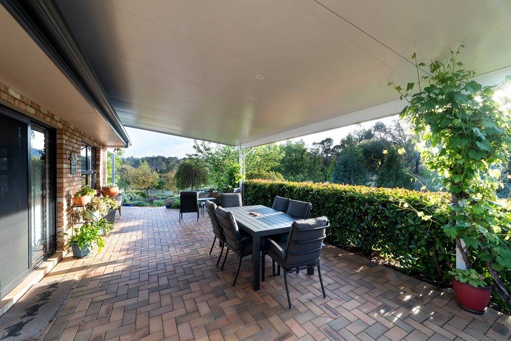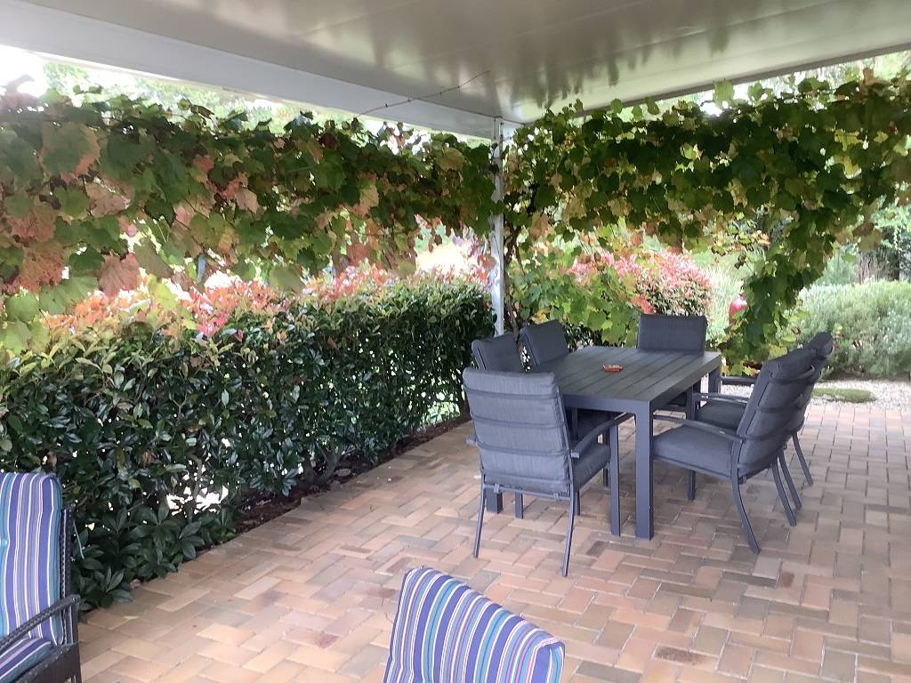 Terrace: outdoor entertainment, flows from living area, ideal N/E aspect, paved, spacious, fully roofed for all year enjoyment, especially attractive with grapevines giving lush colourful foliage characteristic of the Granite Belt. Complete privacy.