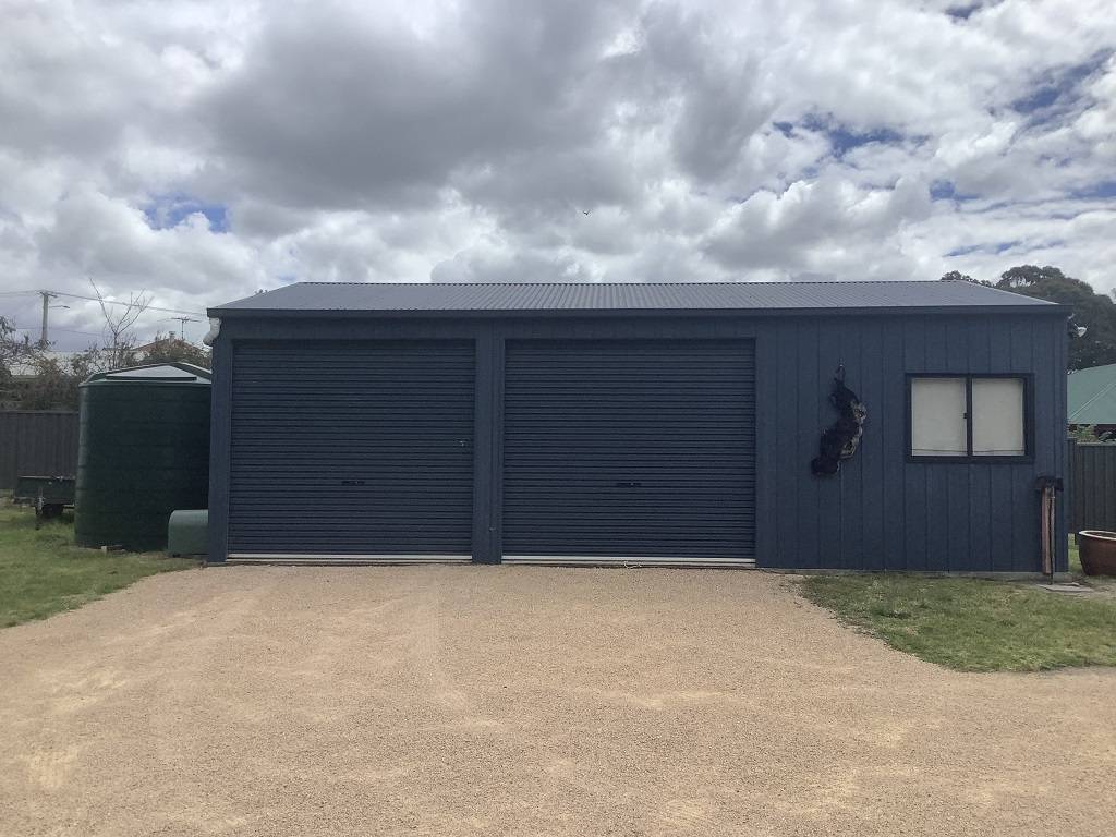 Shed: 3 bay - space for 2 vehicles and workshop area, concrete floor and power.