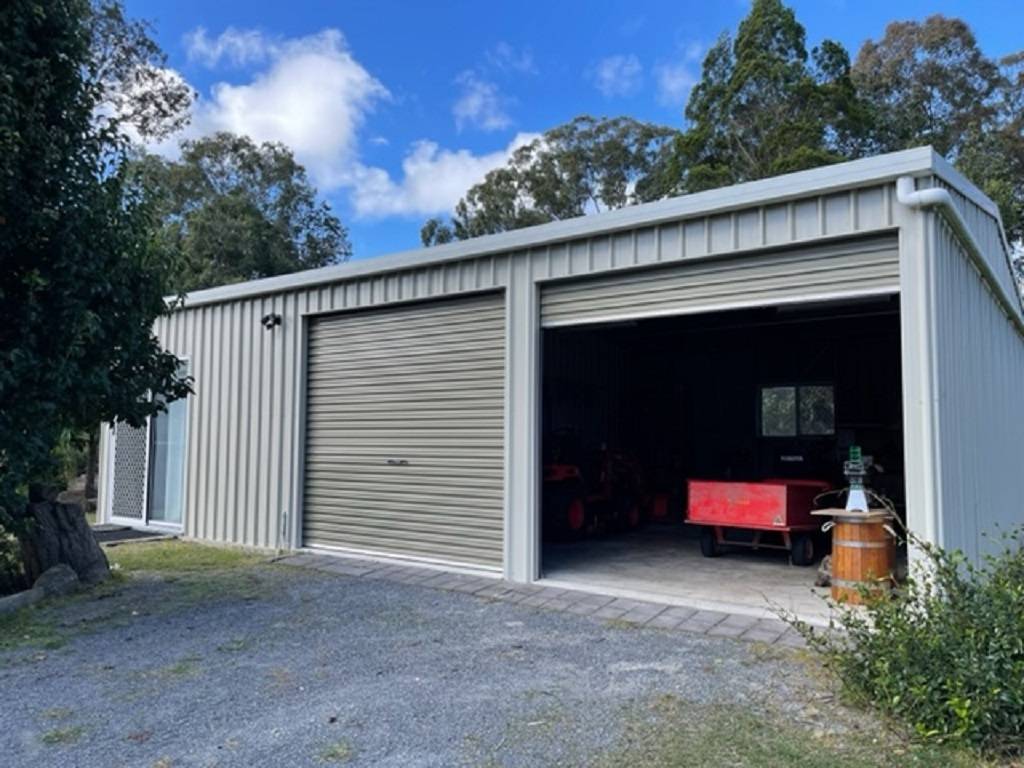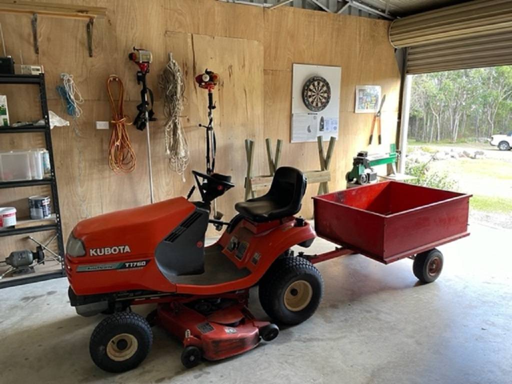 2 sheds are located on the property Shed 1. = 12m x 7m approx. Colourbond steel frame shed which includes 3mx 7m fully lined craft / storeroom plus workshop for garden tools brush cutters and Kubota ride on and trailer in fact all the garden tools you don’t need to bring anything. Shed 2 is a lock up garage plus carport which again house garden tools plus a water pump. Water is supplied from several rainwater tanks.