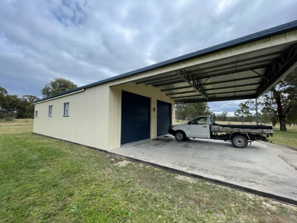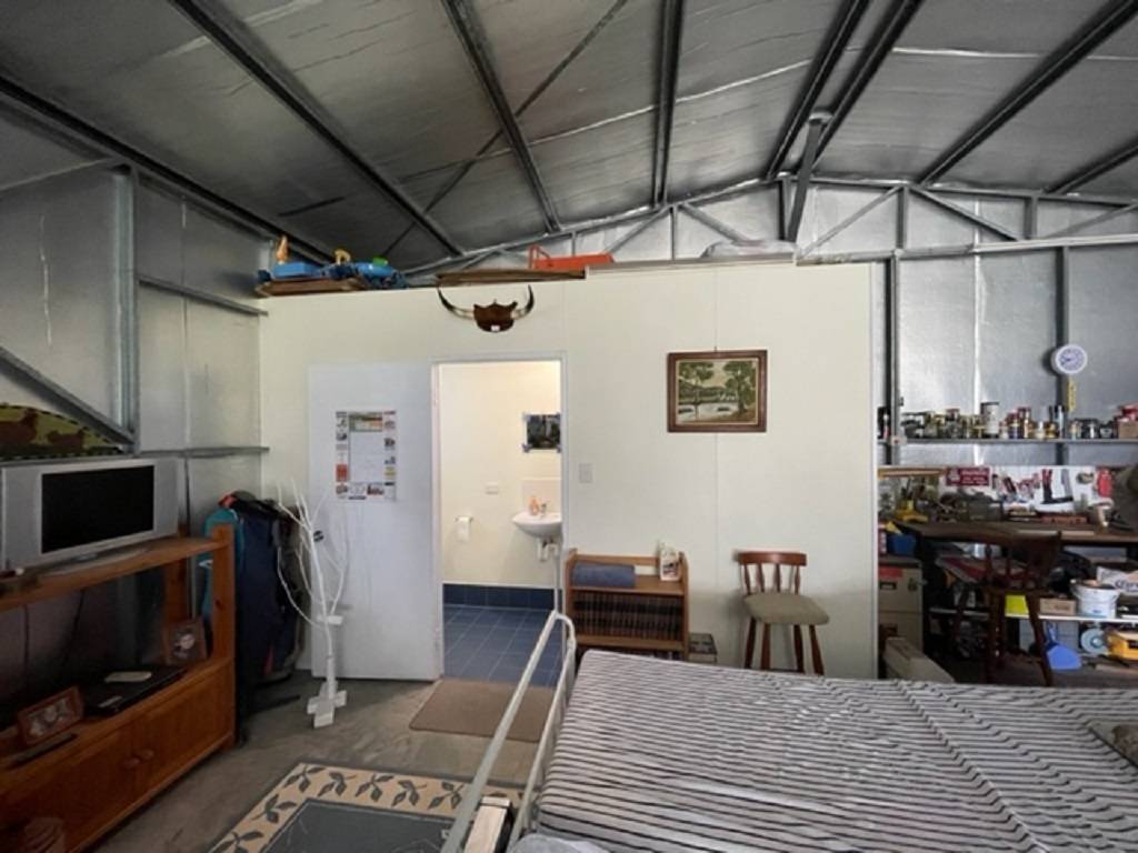 A 18m x 8m steel frame shed is fully equipped with plenty of storage space fully operational bathroom its own rainwater tank insulated, 12m x 8 enclosed with 6m x 8m open carport area. Approximately 58,000 litre rainwater storage. Established low maintenance gardens.