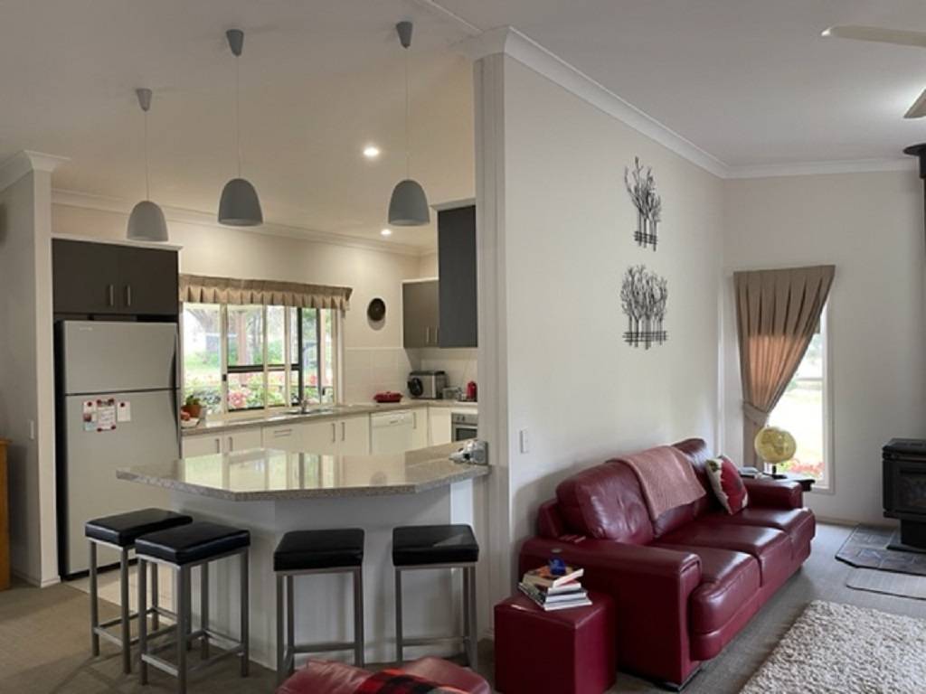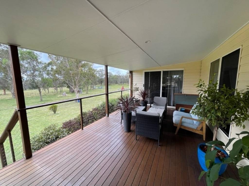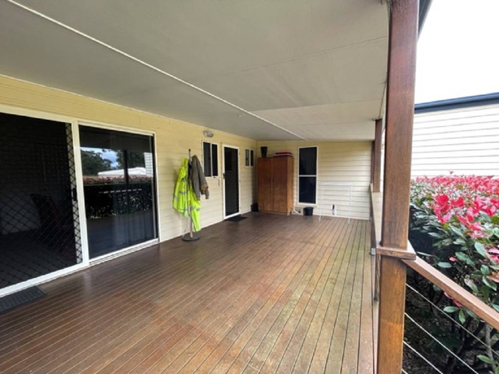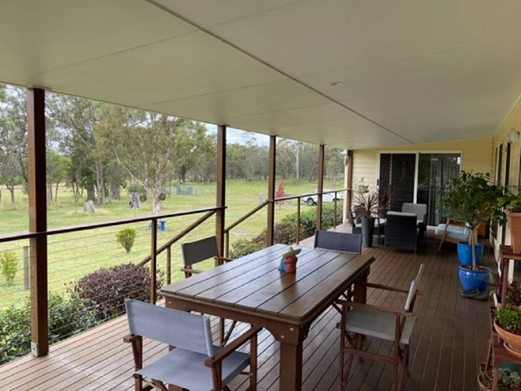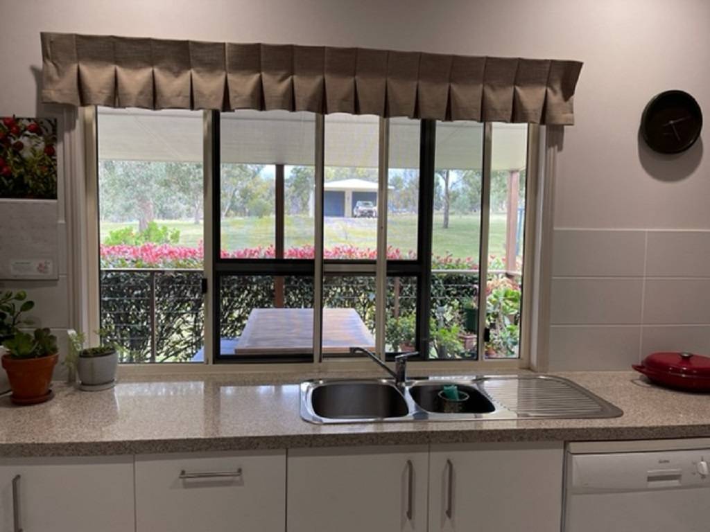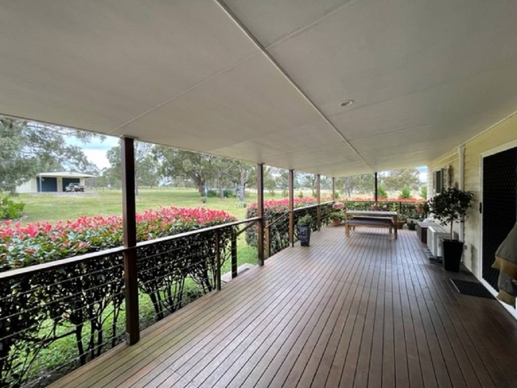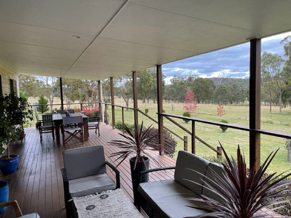 The homestead is located well off the access road for maximum privacy and comprises 4 bedrooms 3main with ensuite and walk in robe with bedrooms 2,3 and 4 having built in robes. North facing living room with wood fired heater opening into dining / kitchen area. Speaking of kitchen there is an abundance or bench and cupboard space with 5 burner gas cook top electric oven and dishwasher. There are 4 linen and storage robes located throughout the home along with ceiling fans and air conditioner unit in dining area. Laundry opens onto rear covered deck area speaking of which their area 3.6m wide covered verandahs on both the front and rear or this home making for best use of seasonal conditions.