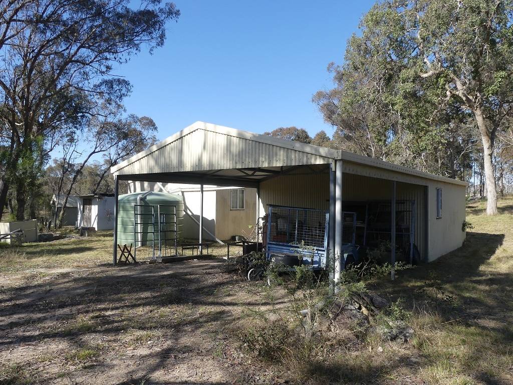 Property includes 3 colour bond sheds Shed 1. has long been used by owners as their getaway having one bedroom bathroom with gas hot water, septic toilet, open plan area with wood heater and gas stove. 7 kva Solar system plus backup generator. Rainwater tanks and camp kitchen. Shed 2. 6m x 6m Colourbond lock up garage, shed 3 6m x 6m lock up garage with attached 6m x6m carport. Plus, separate outdoor shower room, garden shed and generator shed.