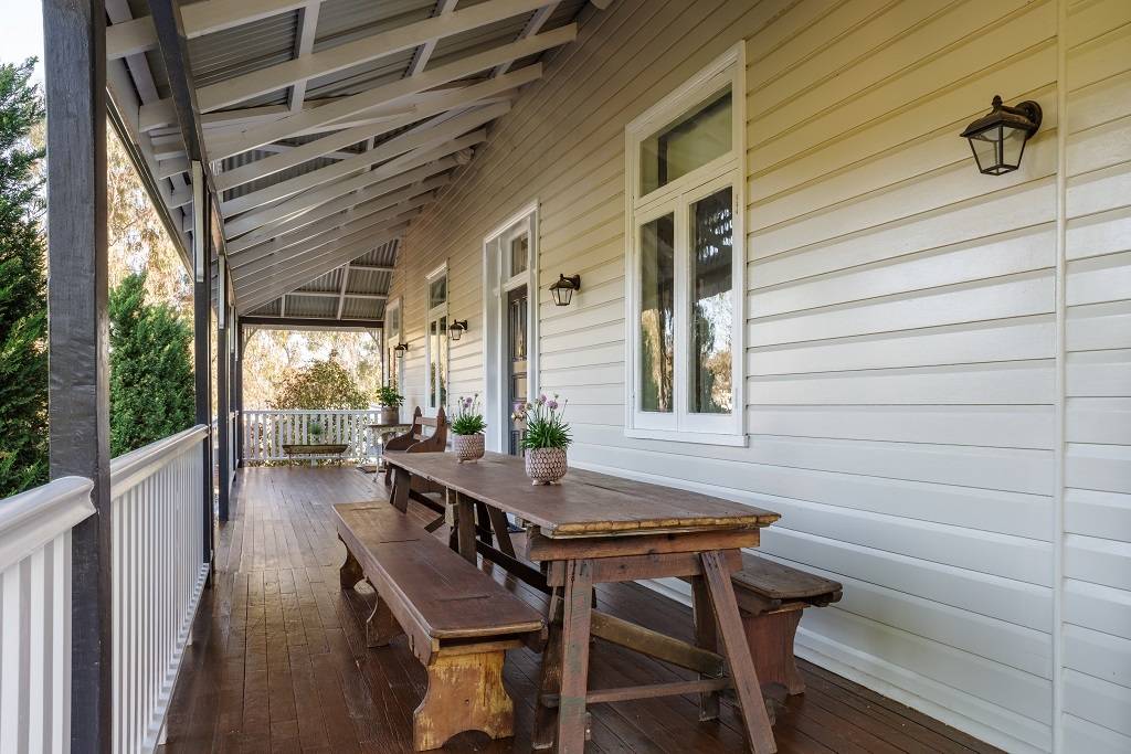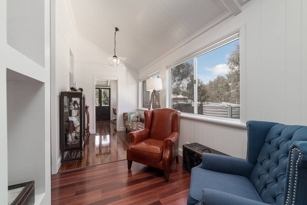 The spacious living areas consist of a formal dining room plus a large open plan lounge/sitting area warmed in Winter from an extra large wood heater. The entire residence has temperature controlled air conditioning for total comfort all year round. More casual living is enjoyed from the sunroom/rumpus, the wide side verandah and the full width extensive front verandah enhanced with direct access to the private northerly paved garden area. The office with built in’s and sunroom have easy access to this picturesque area via classic French doors.