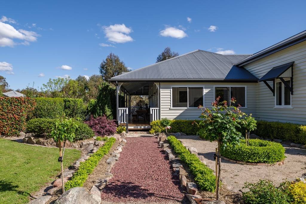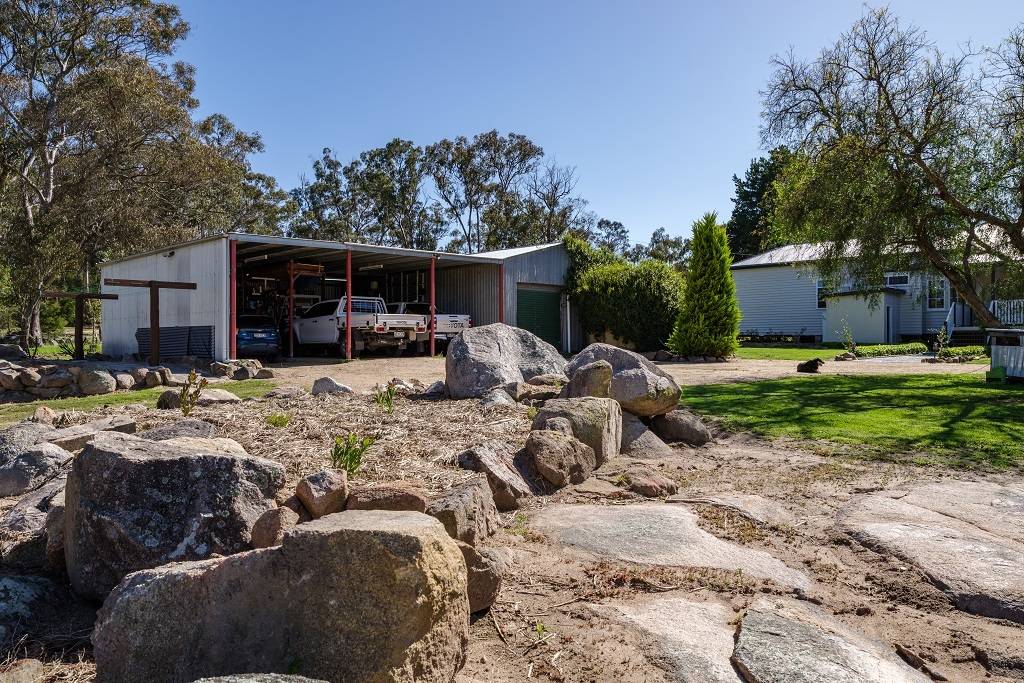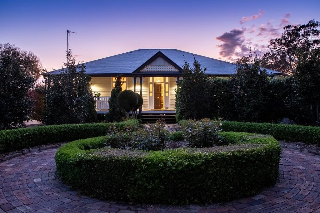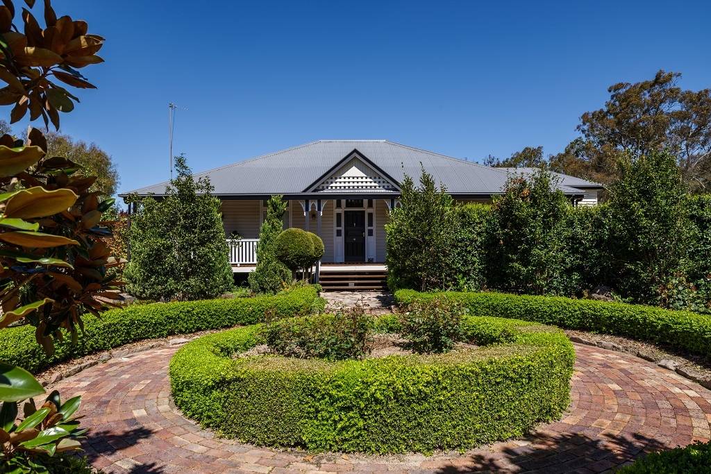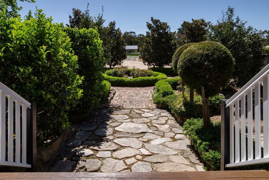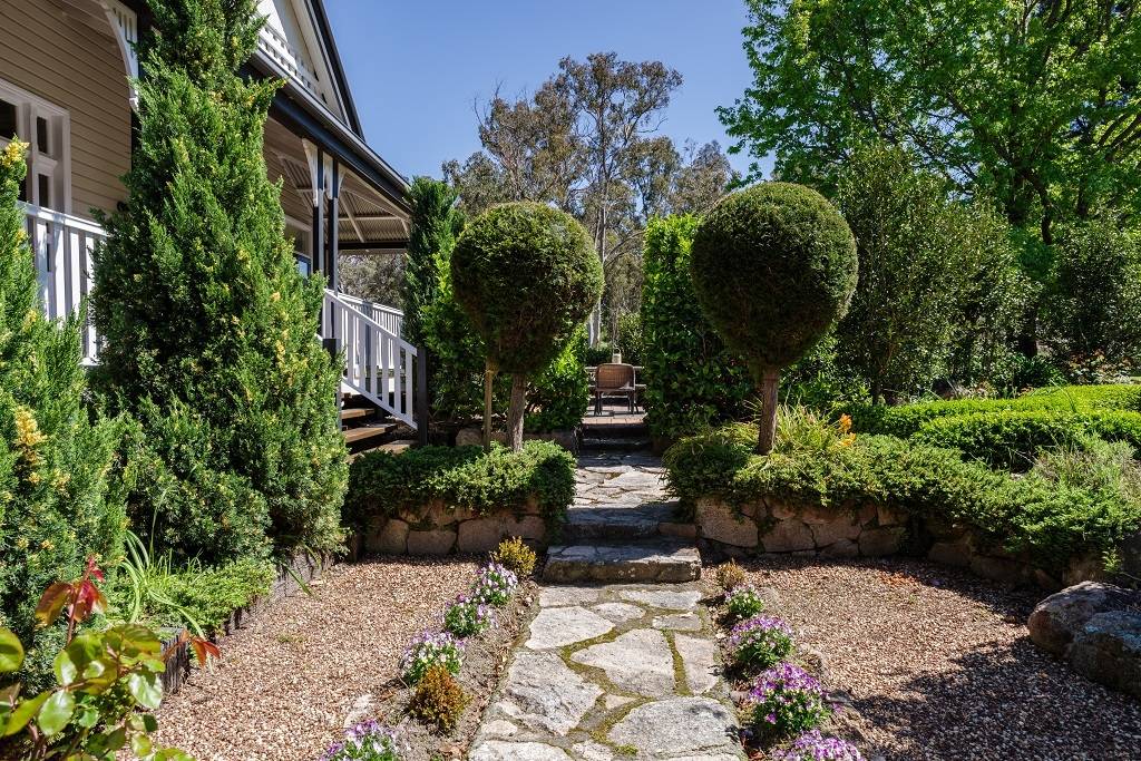 The gardens have established majestic trees showing the classic seasons while roses, camellias, lavender, jasmine and buxus hedges are enhanced with granite paths and stonework using original house bricks in keeping with the gracious residence and characteristic climate of the Granite Belt.