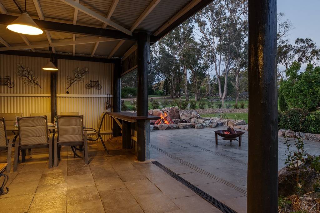 The fabulous large rear fully paved entertainment area (over 110sqm), provides the ideal gathering space for family and friends. Surrounded by lush lawn and delightful established gardens, the undercover BBQ area, timber bar, camp oven cooking and granite fire pit provide year round enjoyment of the great outdoors. All this in private, peaceful surrounds!  Magical moments!