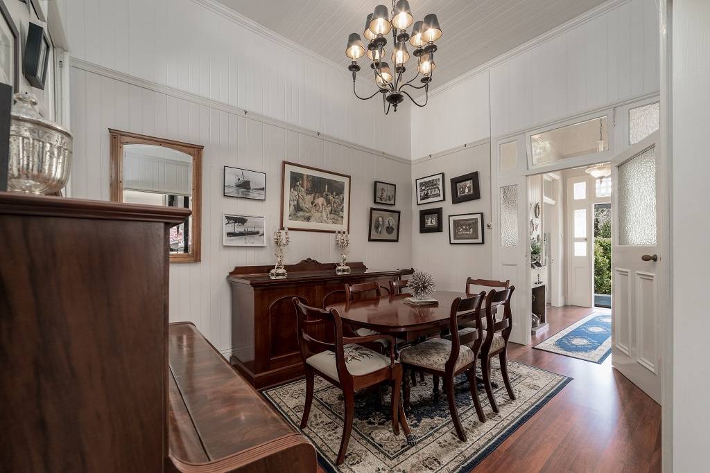This fully renovated, magnificent Queenslander holds over 100 years of history and exudes  unique character and beauty. It has recently undergone a large quality restoration and extension, presents in absolute immaculate condition and still boasts many original features such as 12 foot ceilings, VJ walls and ceilings, wide verandahs, french doors, decorative glass panels and beehive door knobs.