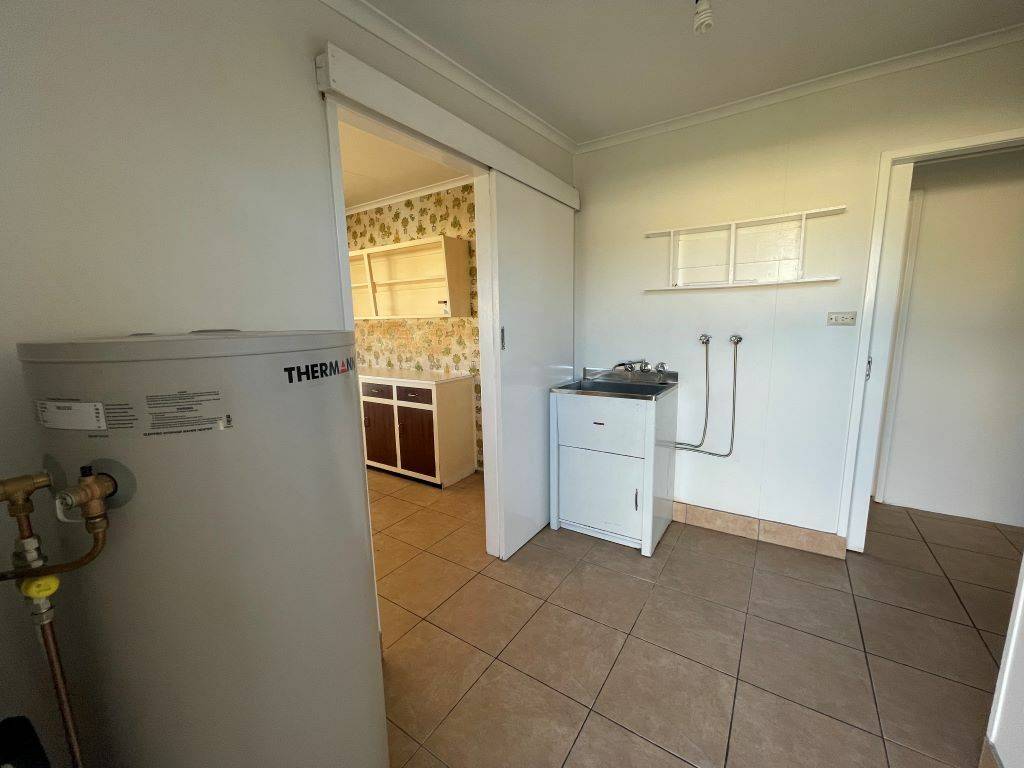 This 1960's era low set home comprises 3 bedrooms with spacious main bedroom open plan kitchen dining and living area, bathroom with shower over bath, linen cupboards in hallway. Separate laundry. East facing sunroom. Double garage which could easily be turned into extra living area. Garden shed plus very well fenced back yard. House has in recent times been painted inside and out.
