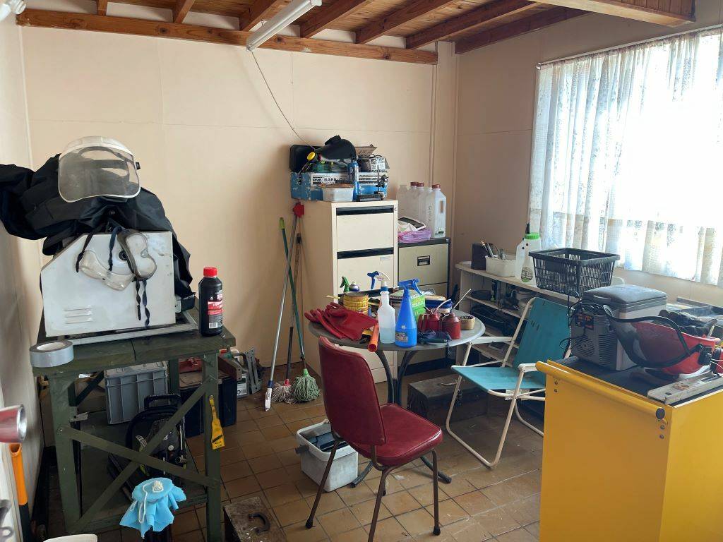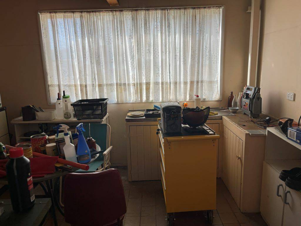 Shed: 7 bay steel frame machinery /storage shed with single bedroom flat including separate kitchen and bathroom / toilet [ presently used for storage]. 3m x 3m garden shed.