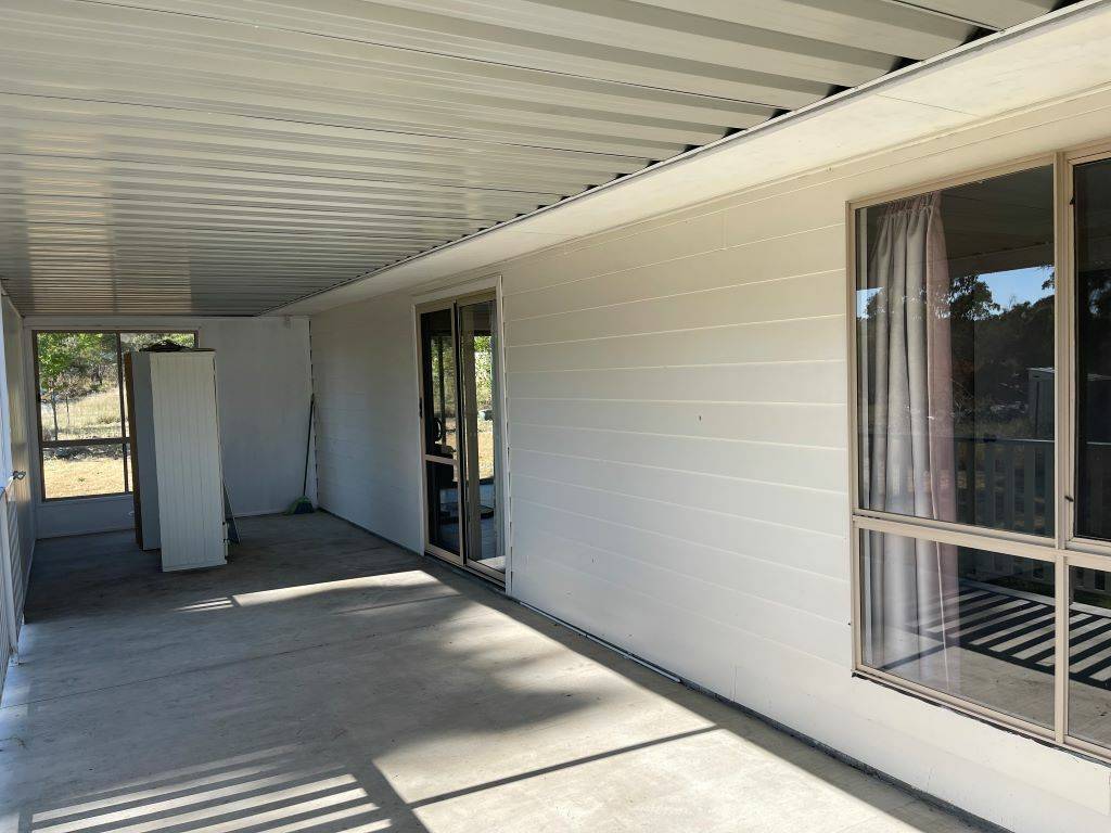 Home: Open plan living / kitchen and dining area with sliding glass doors opening onto front verandah and North pergola, 2 bedrooms bathroom / laundry combined separate toilet. Low set easy access with open patios both front and rear.