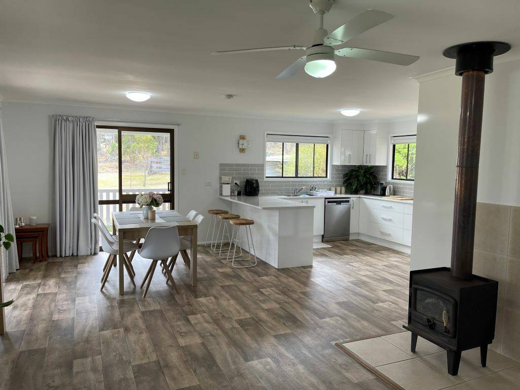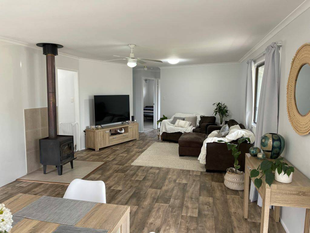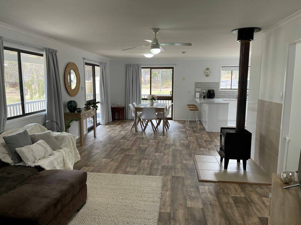 This beautiful home has been renovated through out to include all new floor coverings, painting inside and out, new kitchen including appliances of dishwasher - electric hot plate - exhaust fan - wall oven. Plenty of bench top space including lovely breakfast bar and plenty of storage space. Combined living and dining area with wood fired heater and ceiling fan. These areas open onto a very inviting covered timber L shaped verandah. Living dining and kitchen areas have plenty of generous size windows. Both bedrooms have built in robes and ceiling fans, bathroom has also been fully renovated fully tiled new vanity and shower over bath. Laundry again has been renovated and includes storage area.