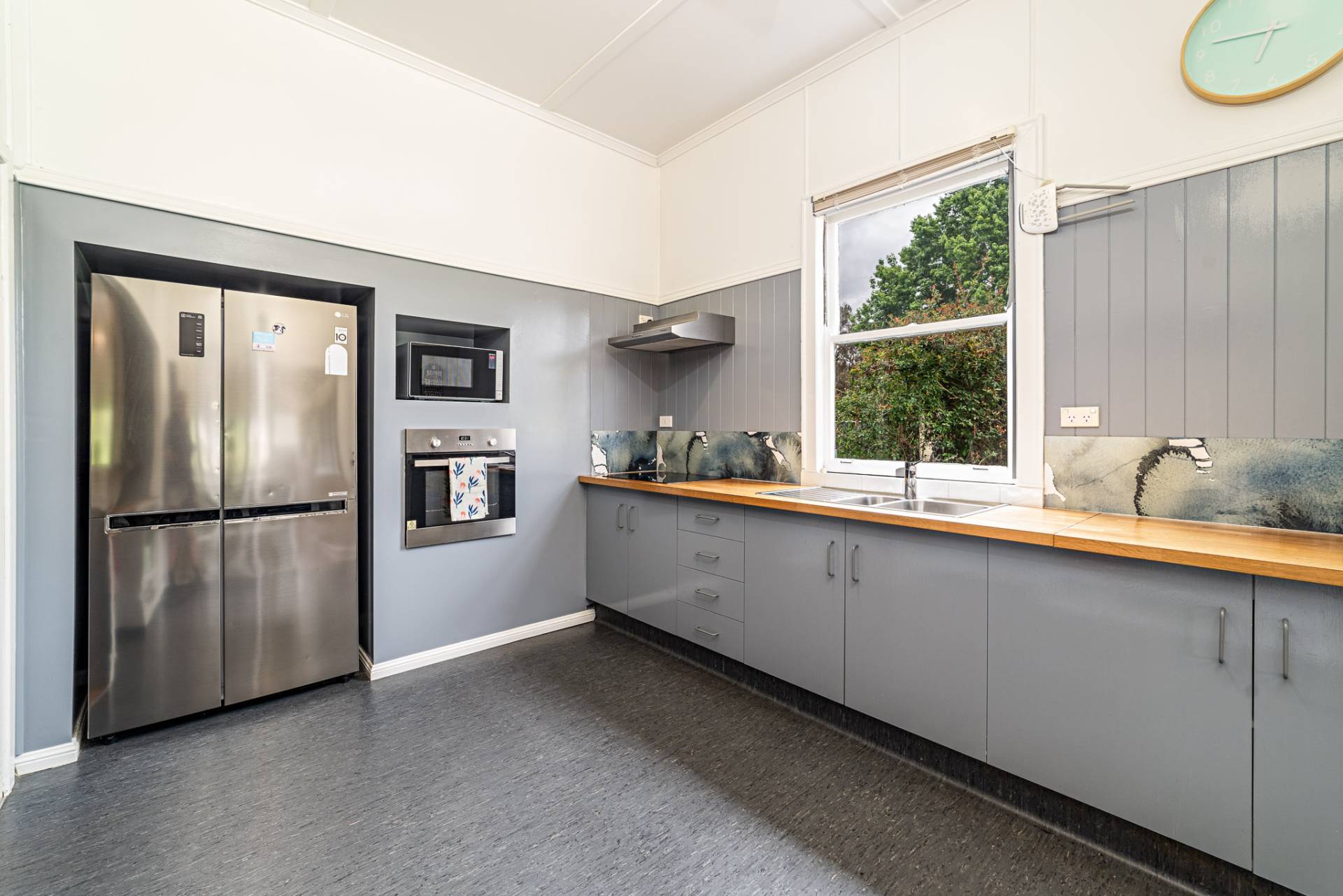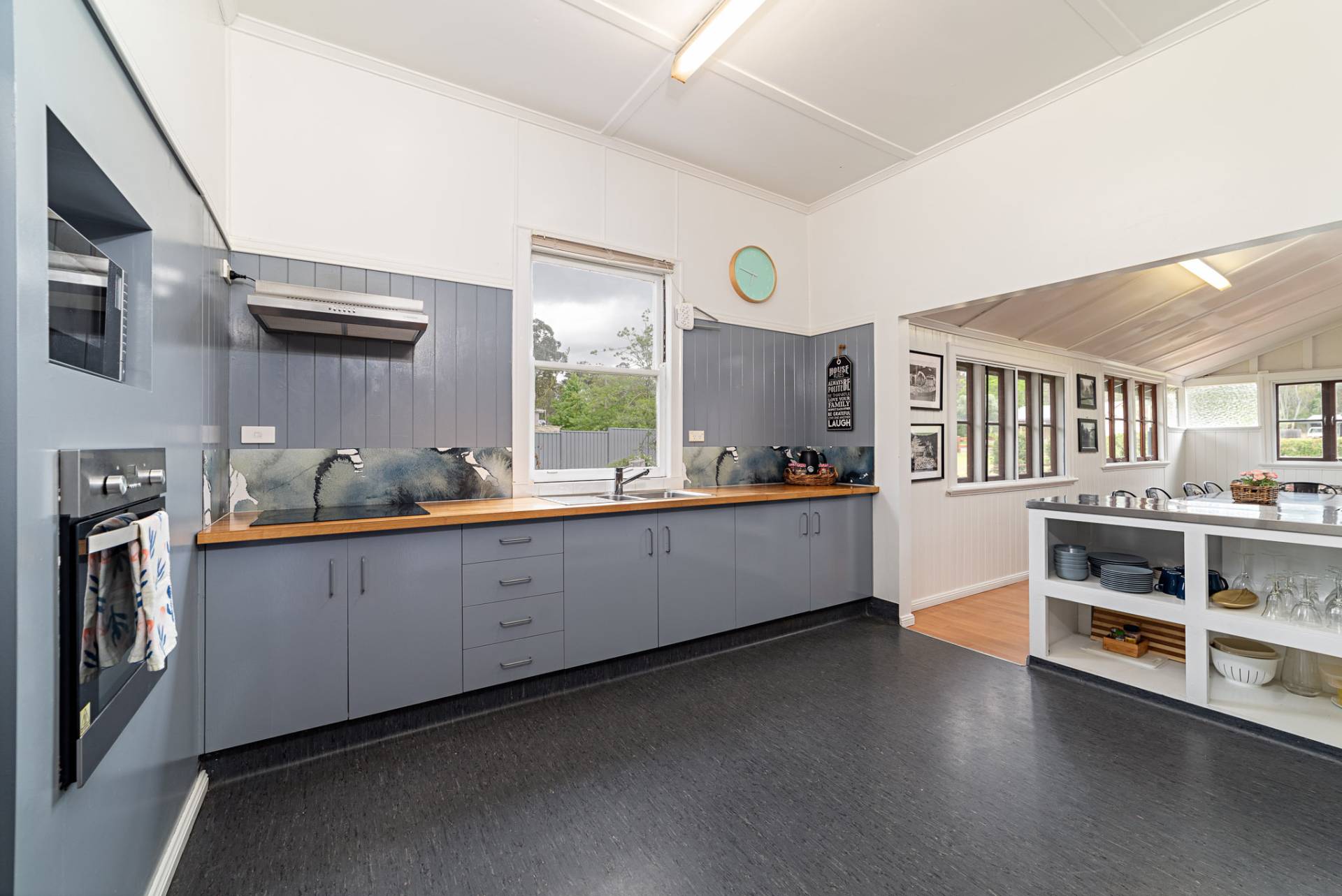 The extra large dining area plus an extensive open plan kitchen with electric cook top, oven and plenty of cupboards are a worthy benefit when  catering for large groups or just a few guests.