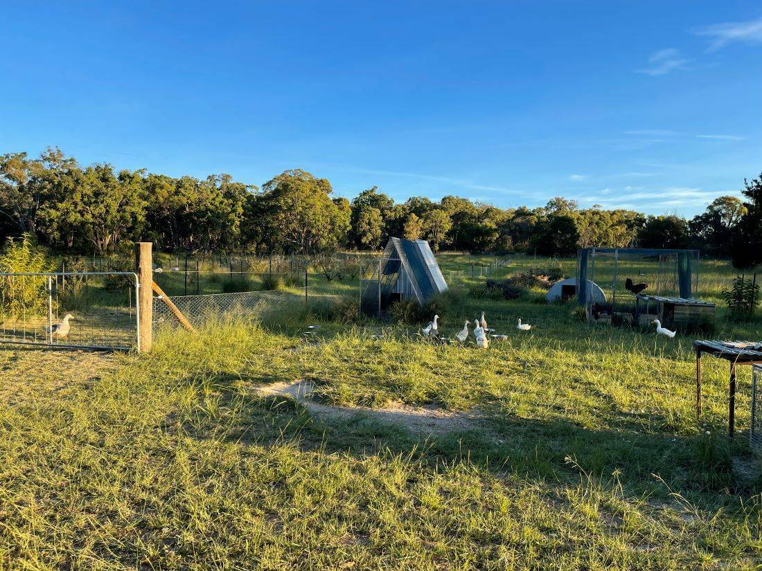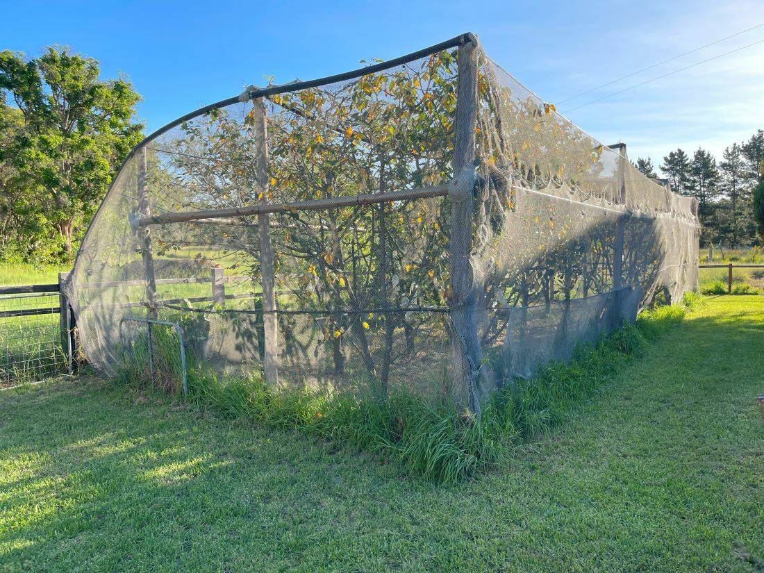 An assortment of fruit trees vegetable garden, secure Quoll proff chicken coupe.