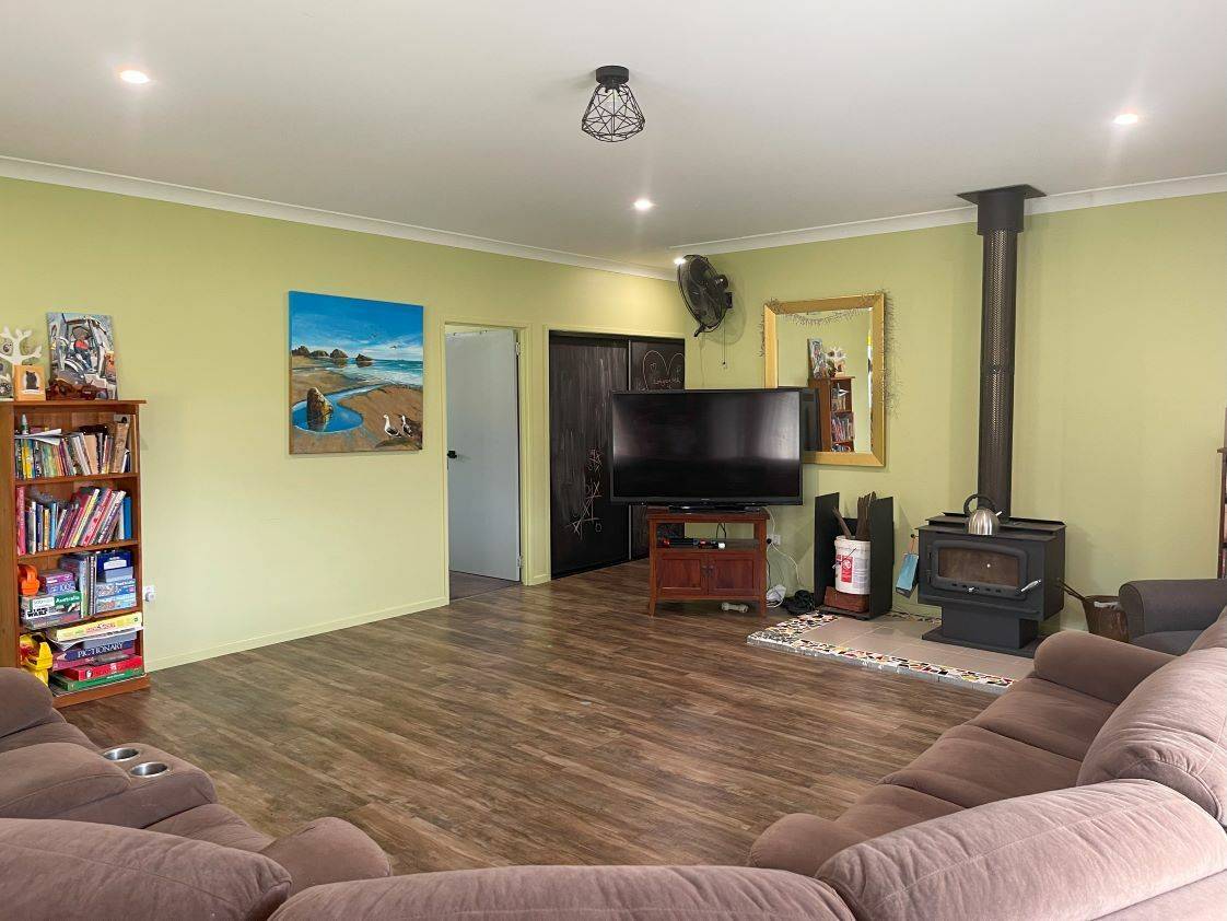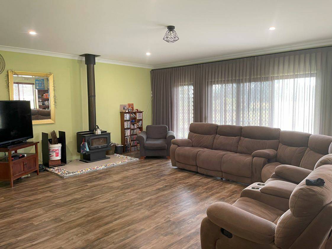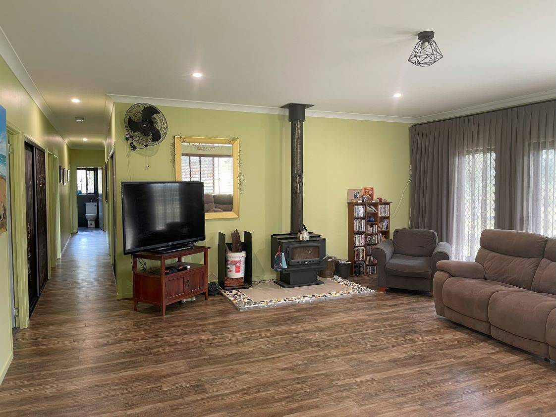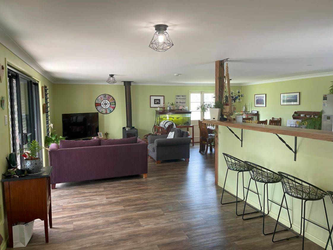 # Separate lounge room with large wood fired heater with large glass sliding doors opening onto North Facing patio. Office nook with Starlink internet connection.