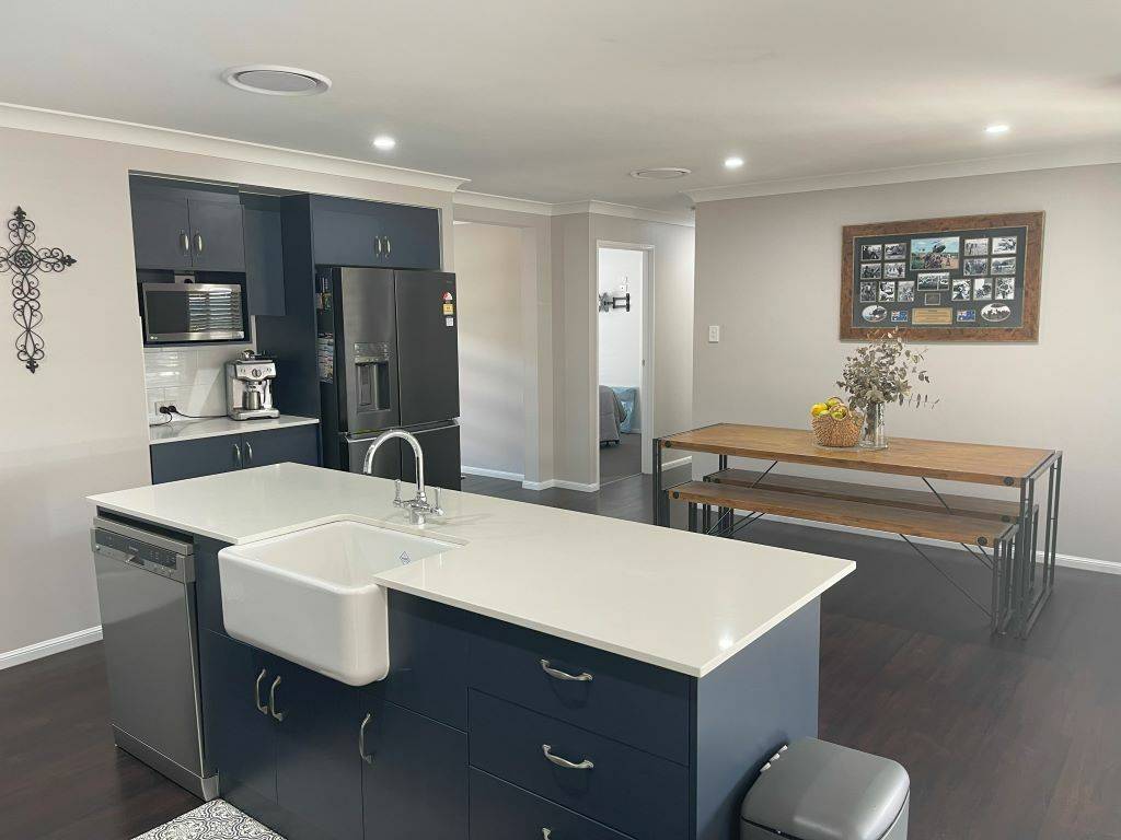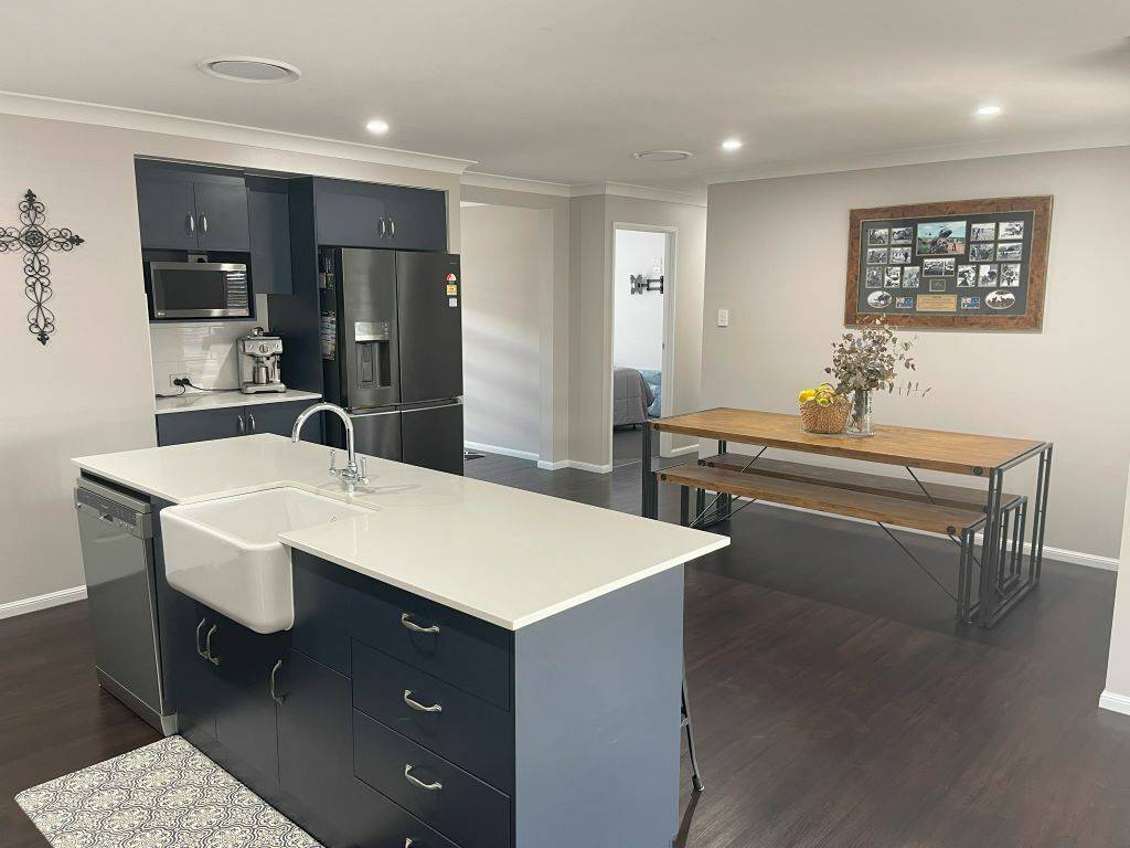 # An ideal home built in mind of extended family or bed and breakfast accommodation in mind. Main living includes large main bedroom with ensuite and walk in robe, bedrooms 2 and 3 are both queen size with built in robes. Bathroom with shower and bath, separate toilet. Original garage allocated space has been made into muilti space living room includes large bench including sink and separate toilet. [ 4 toilets for whole house] and can be used for business or double garage, sliding door onto fully fenced courtyard area.