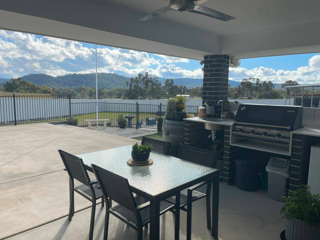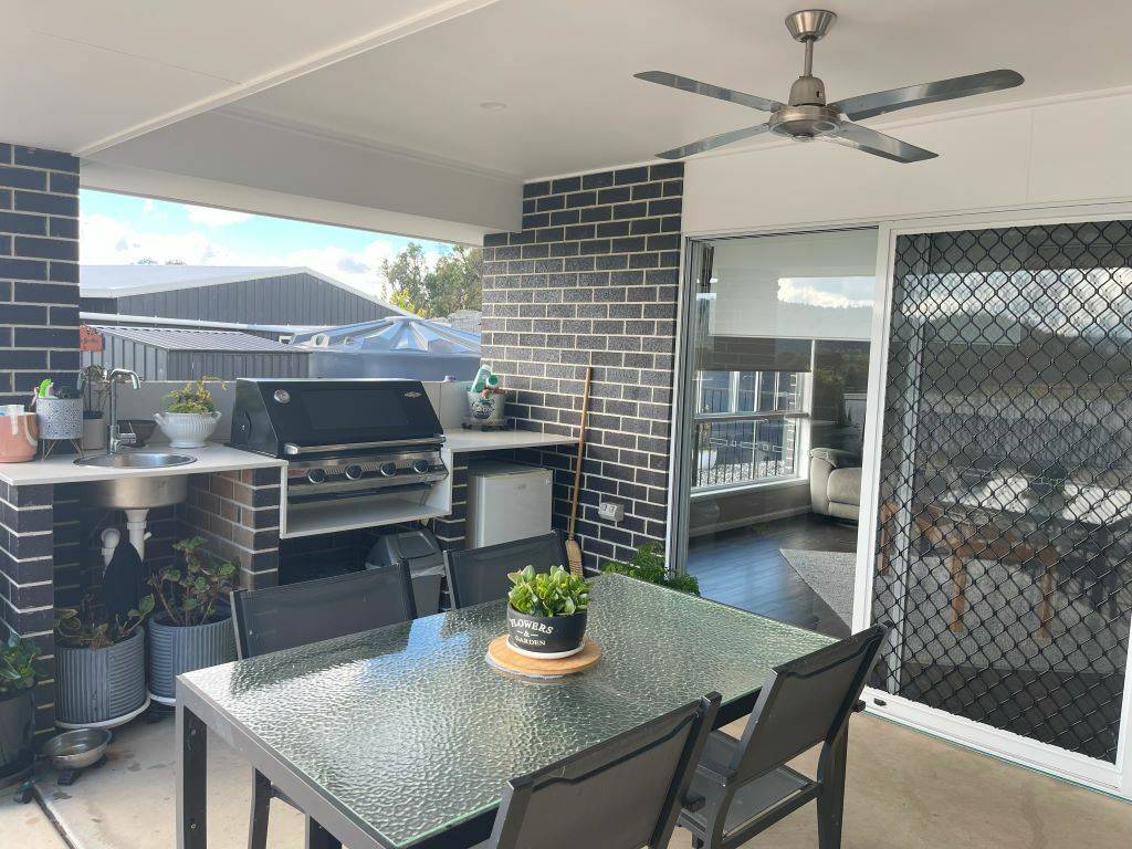 # Opening from living room is a stunning Alfresco area plus large open area concrete entertainment area which is also pet and child friendly fenced.