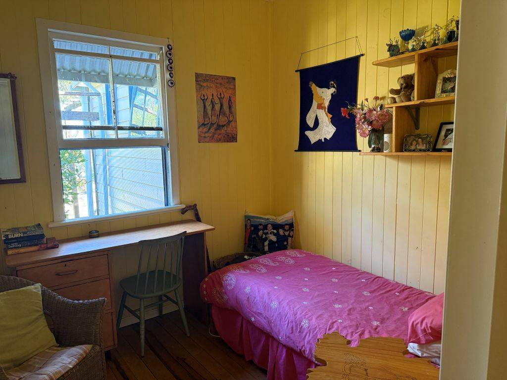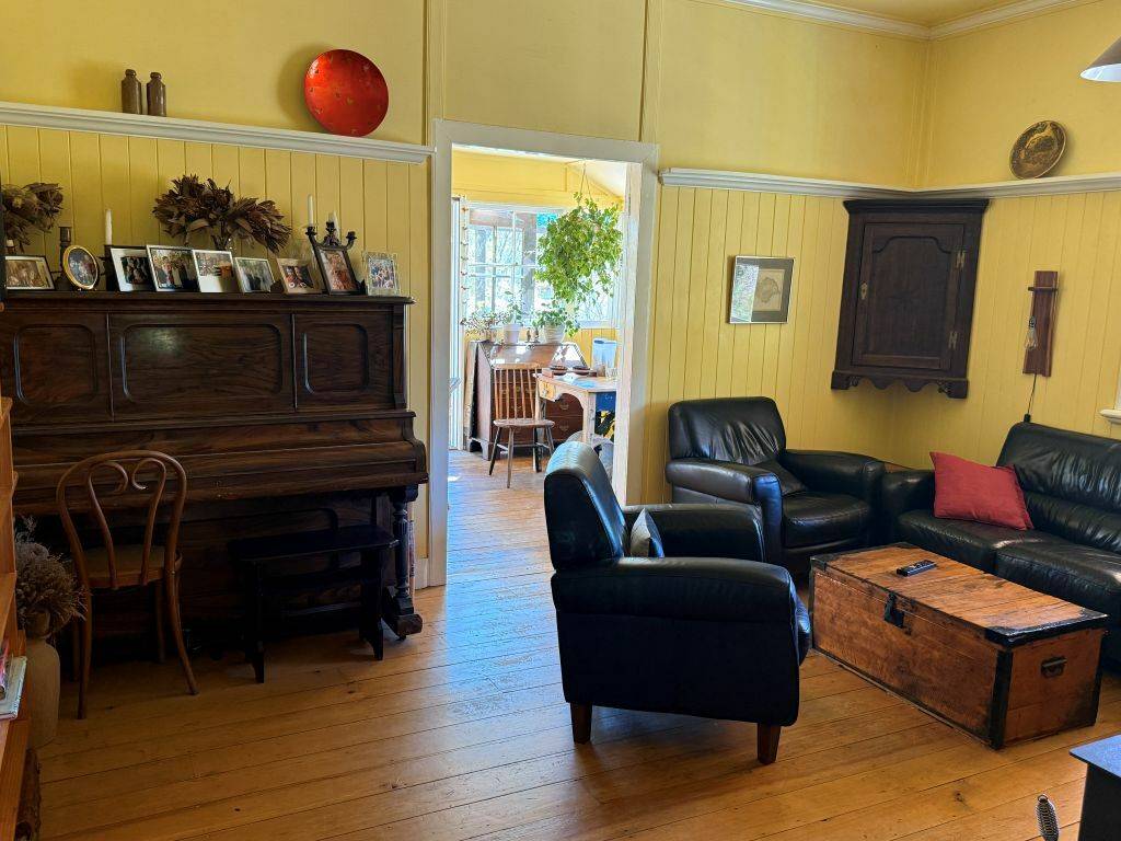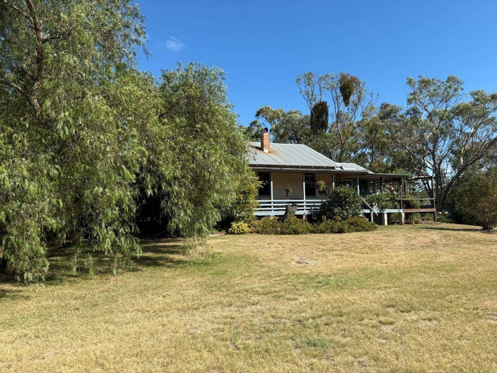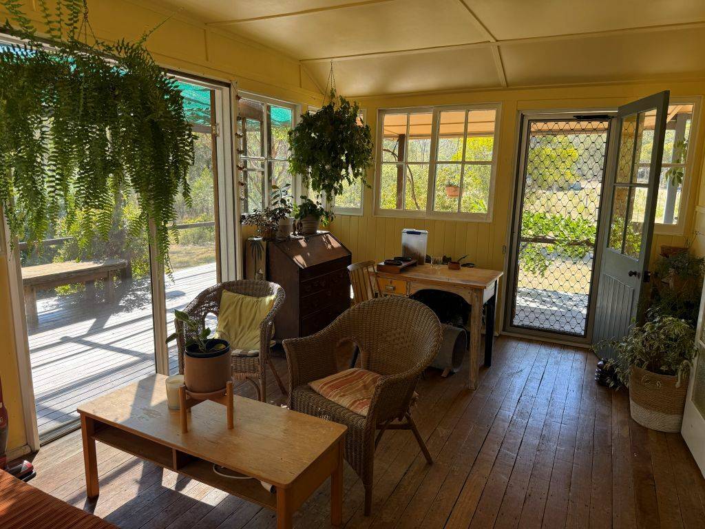 A 1950's era timber house is ideally located and surrounded by gardens, numerous Currajong trees and a well shaded area under an old Pepperina tree. Surrounded by open and covered verandas. There are 3 bedrooms and an office, with the main bedroom having two access points to the veranda and a large second bedroom with lovely views. Apart from the large main bedroom, the three other rooms contain floor to ceiling built in wardrobes. A generous sunroom also opens to a verandah as well as leading into bedroom, living room. This room has a cozy wood fired heater and as with most rooms throughout the house, polished timber floors. Country style Kitchen/dining room with cork flooring and pantry is well located in a sunny area of the house with access onto verandah's, the house is fully screened and includes a sprinkler system over all deck areas.