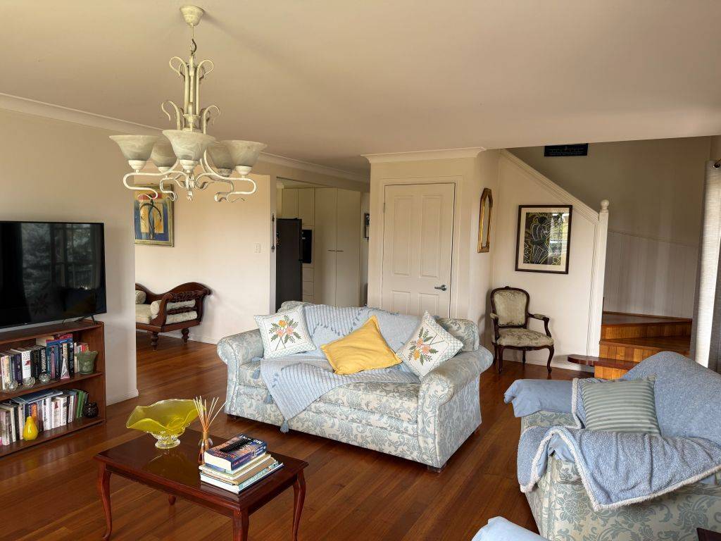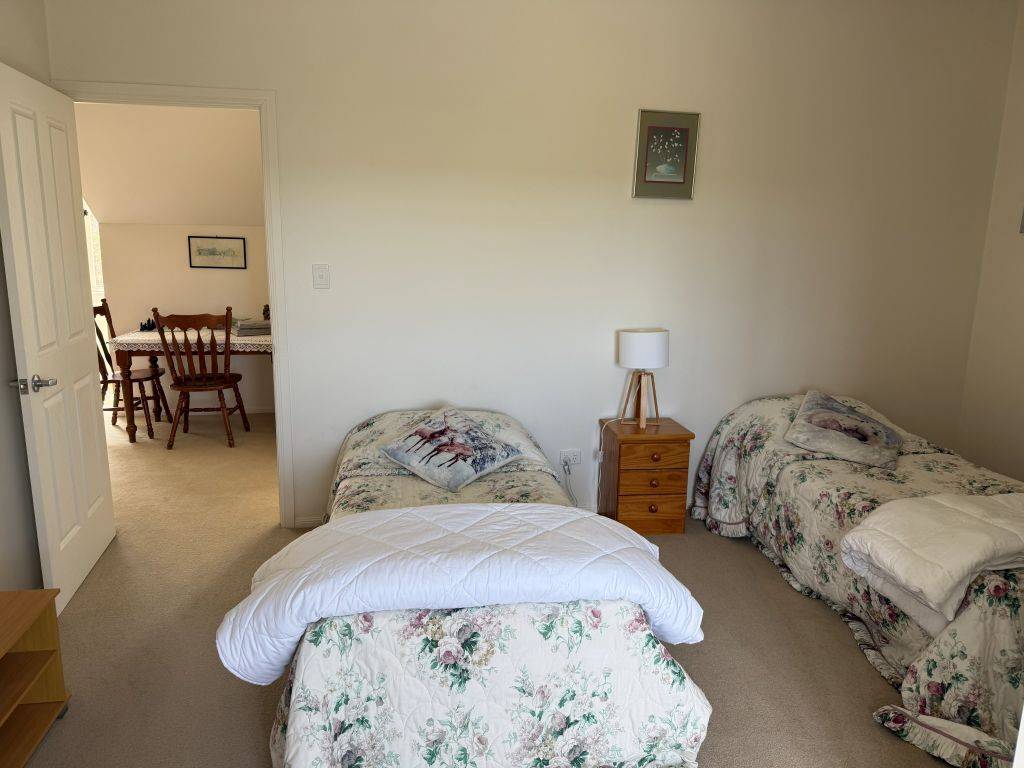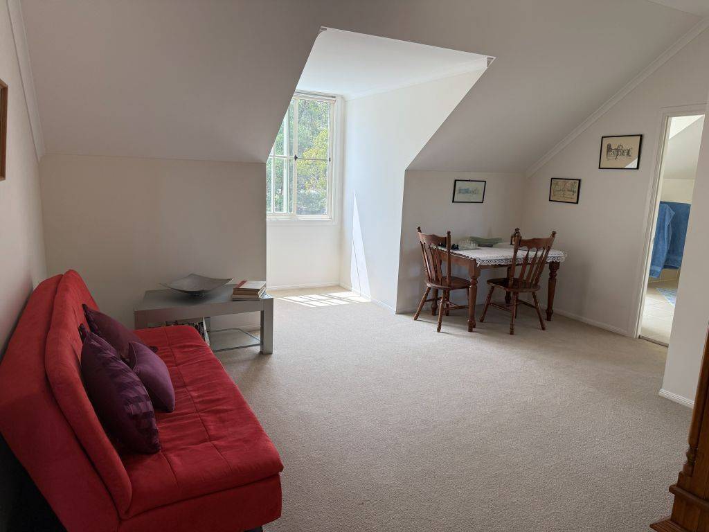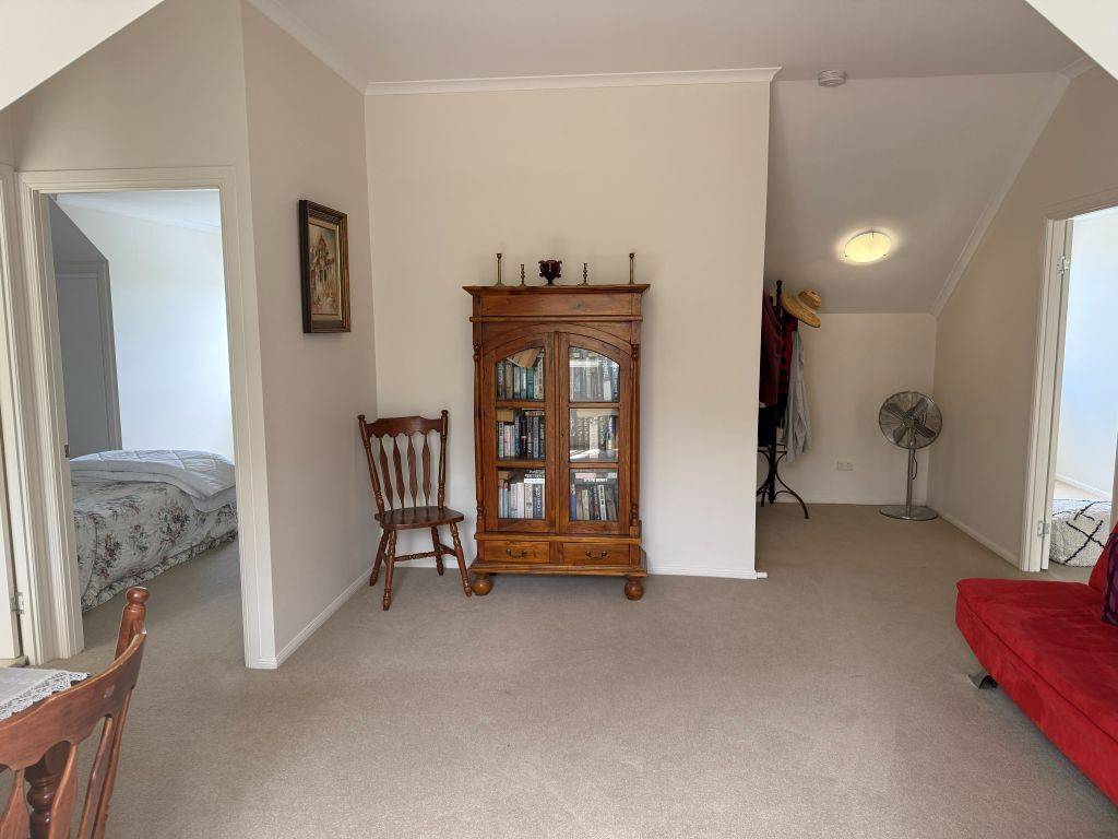 Our charming country home offers upstairs and downstairs living, the lower level includes generous living and dining rooms with timber floors and high ceilings, both rooms open onto covered deck areas with the living room having a large wood fired heater. The kitchen is well appointed with plenty of storage 4 burner gas top cooker plus electric oven. The main bedroom is also on the lower level and is a generous size also opening onto the verandah, includes a walk-through robe and ensuite.
