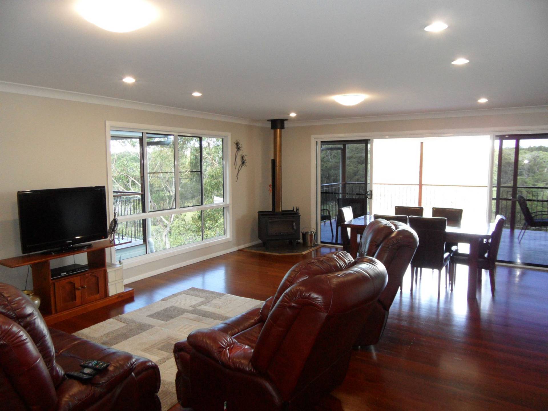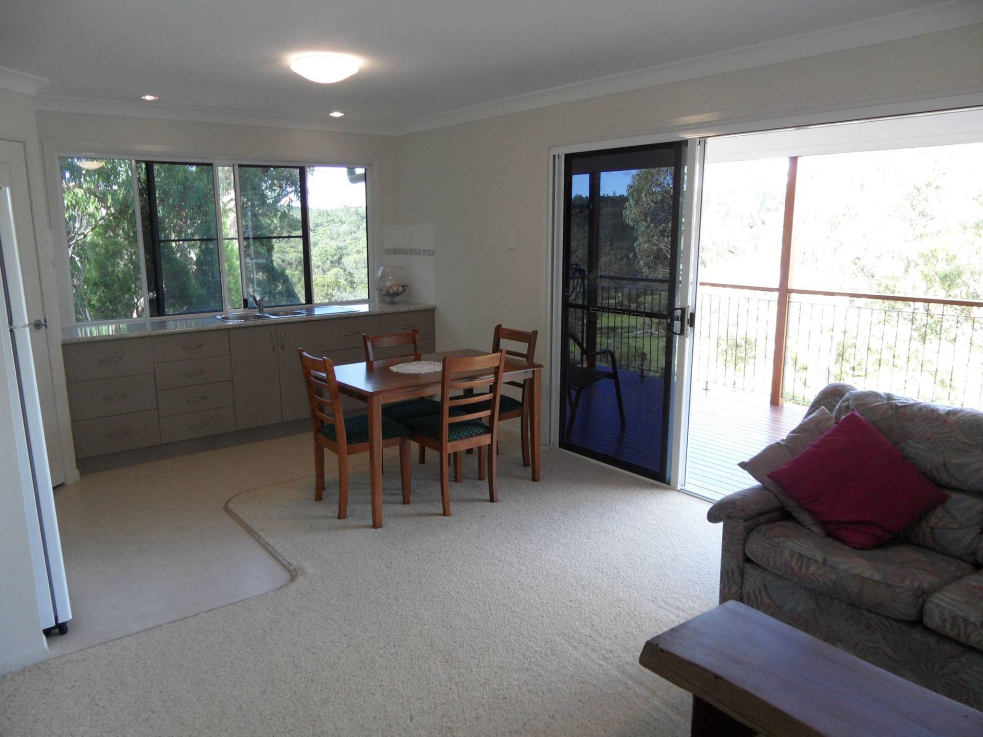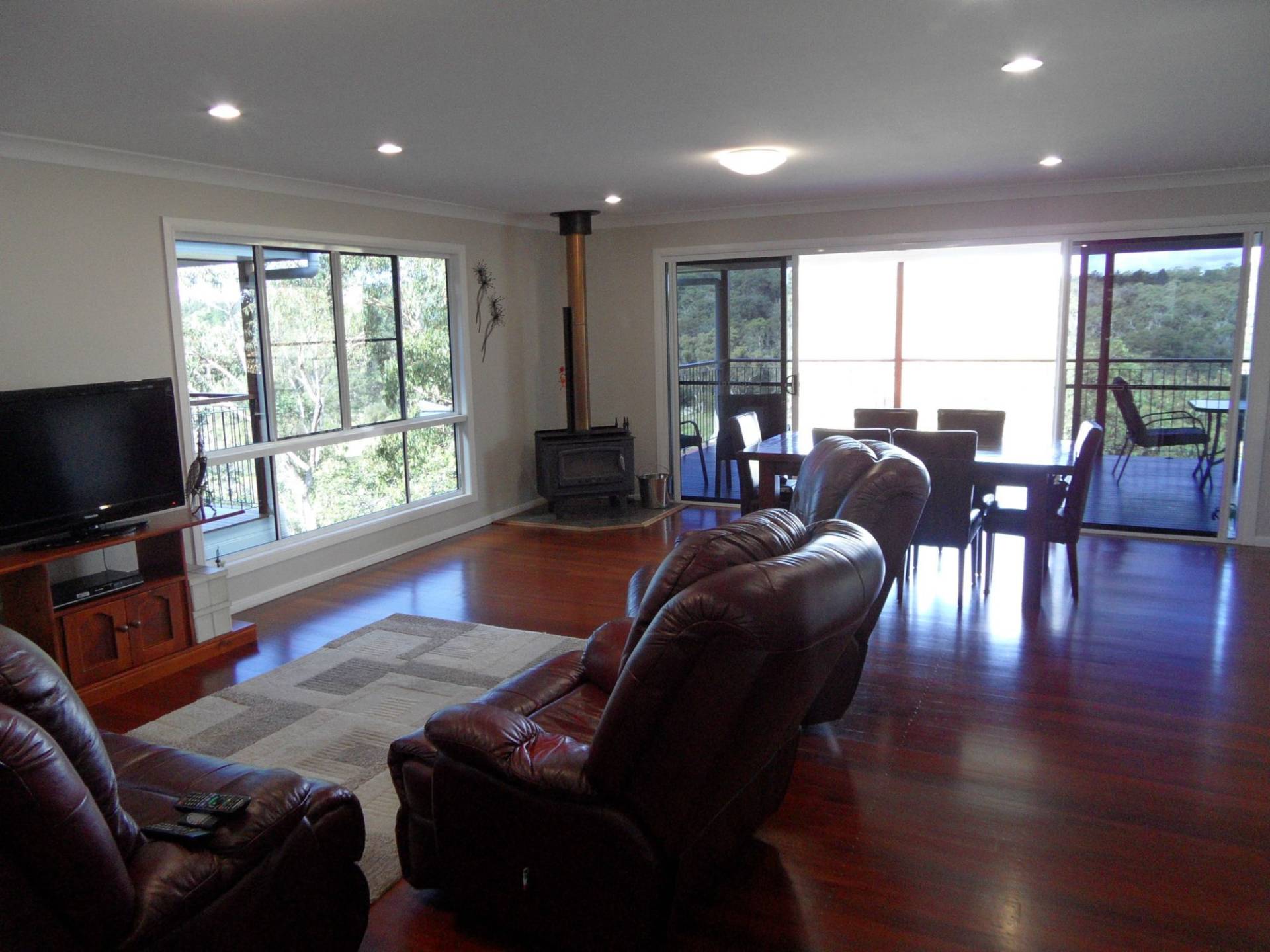 Two quality adjoining homes - one for you - other for family/guests -terrific set up! Main home offers two bedrooms (or one with study), both built in, ideal open plan living, cyprus pine frame, ironbark polished floors (insulated), wood heater (plenty here to use!), well appointed kitchen, laundry area, bathroom and the most fabulous covered deck with views over the land - trees tops, open natural spaces - N/E aspect - high and private! Other home has one double bedroom (built in), open plan living, kitchen, bathroom, laundry area plus ideal N/E aspect and same scenic elevated natural views.