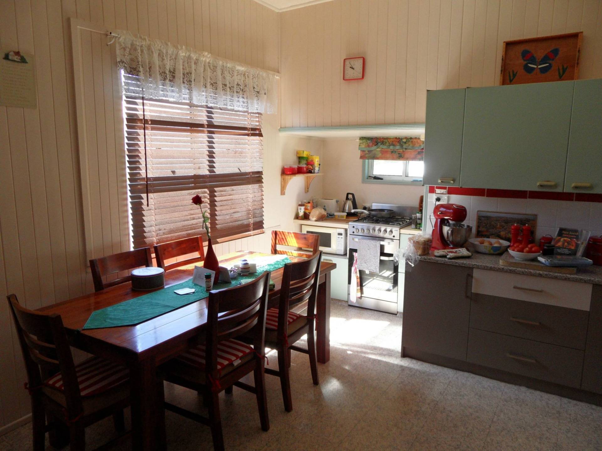 Outside is the very generous 1550m2 land -level and open grounds too with large carport, 2 x L/U garden sheds, a chook pen and rain water tank gravity fed for the garden! Plus all town services. Property is also fenced.