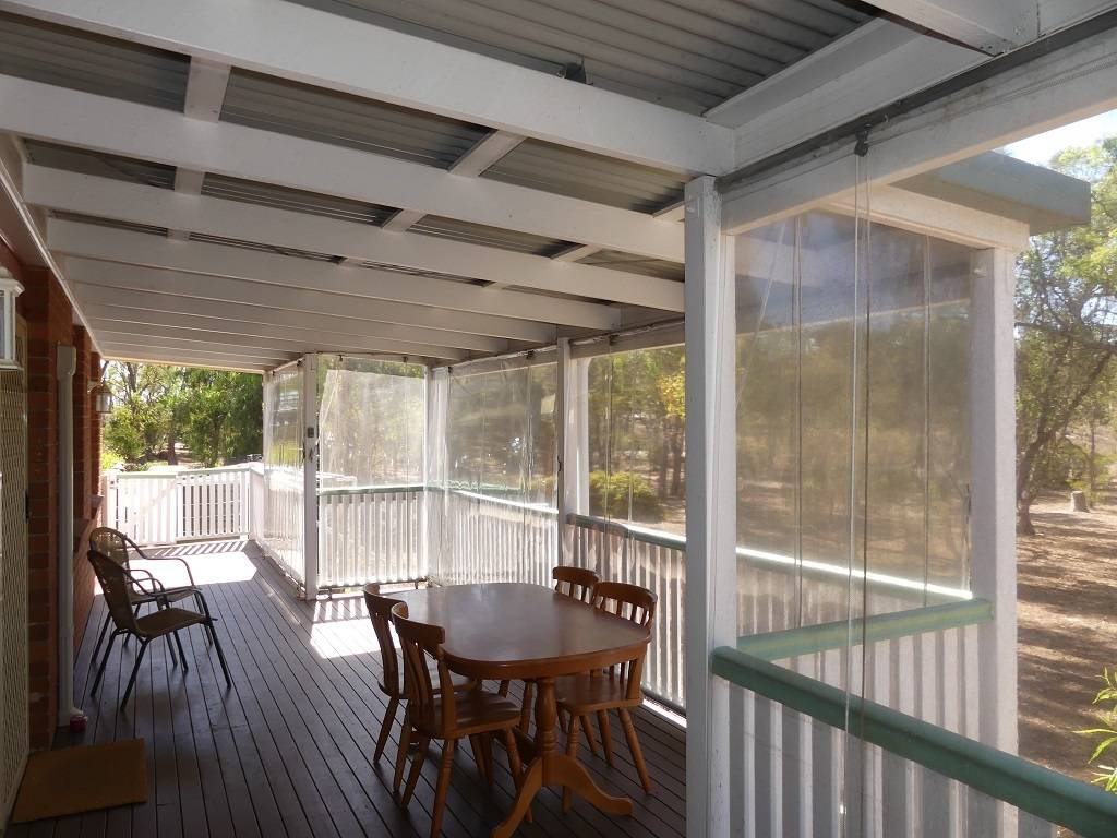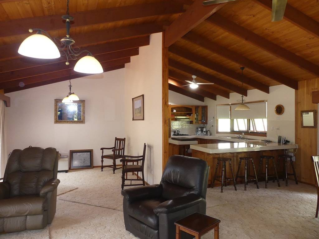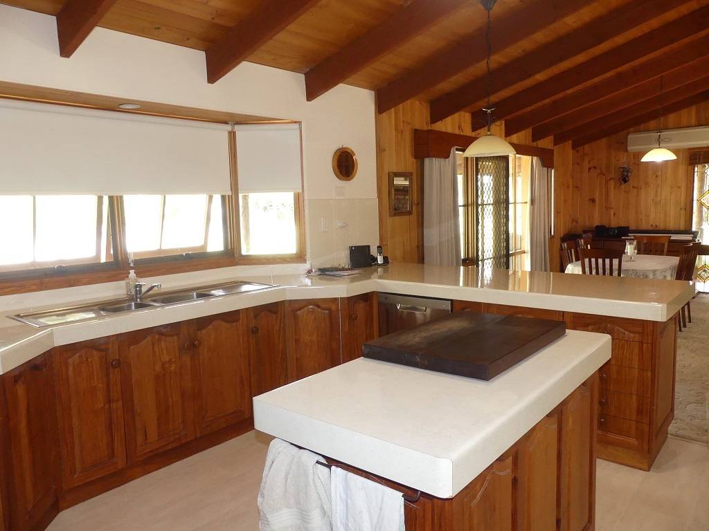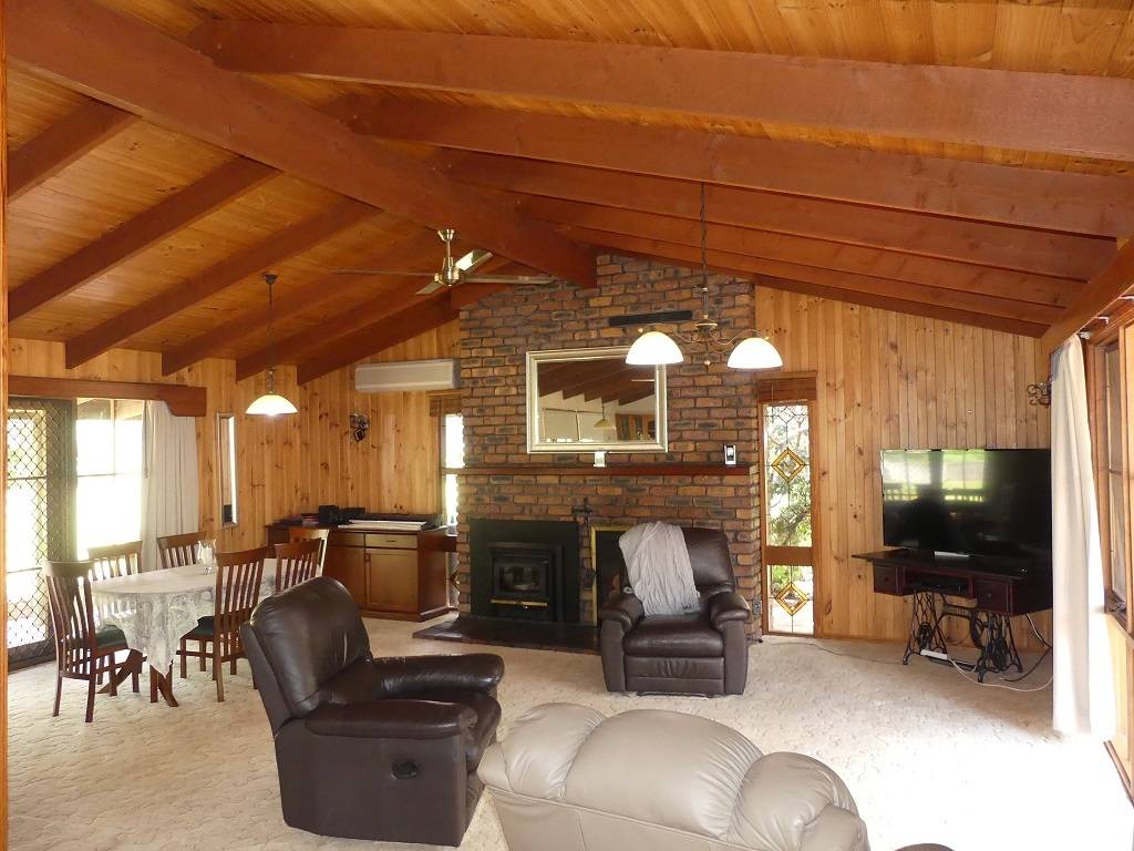 The home is low set log cabin style timber residence features 4 bedrooms, main with air conditioning, ceiling fan and large ensuite, combined lounge living dining room with wood fired heater, ceiling fans and reverse cycle air cond, generous size family kitchen with plenty of cupboard space, generous size family bathroom, separate toilet and laundry. The home has covered verandah on all four sides with paving all round.