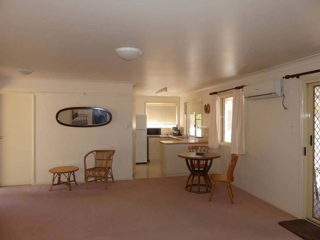The fully self-contained cottage nearby is ideal for those needing or wanting to work from home or guests/teenagers/more family. The cottage includes 2 bedrooms, combined lounge/dining (air conditioned), kitchen, bathroom/laundry. A Northeast facing covered verandah opens off the living area and overlooks the attractive grounds - very private!