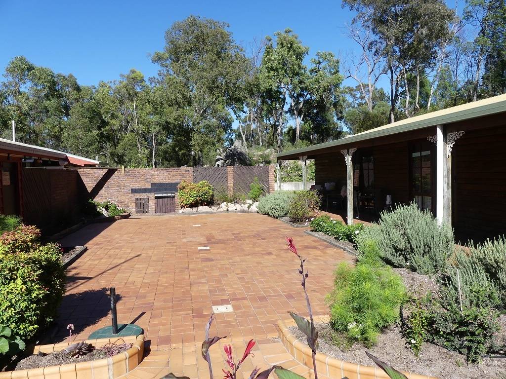 Outside is great 'al fresco' entertaining area, fully paved with built in BBQ and double garage (remote control door) with extra bathroom & toilet here! The entire property has 2 septic systems, 2 hot water systems, 4 rainwater tanks, grey water system, town water.