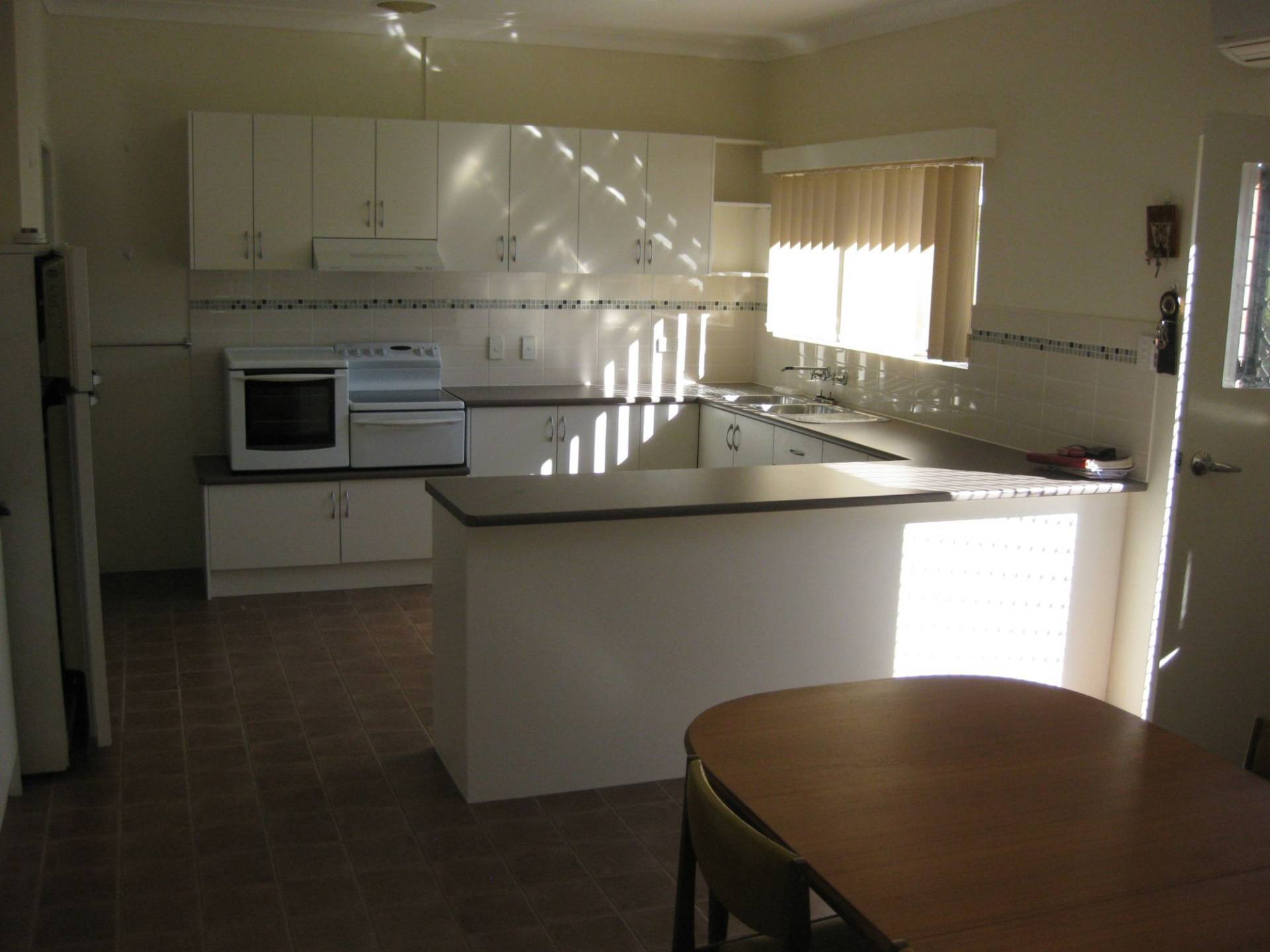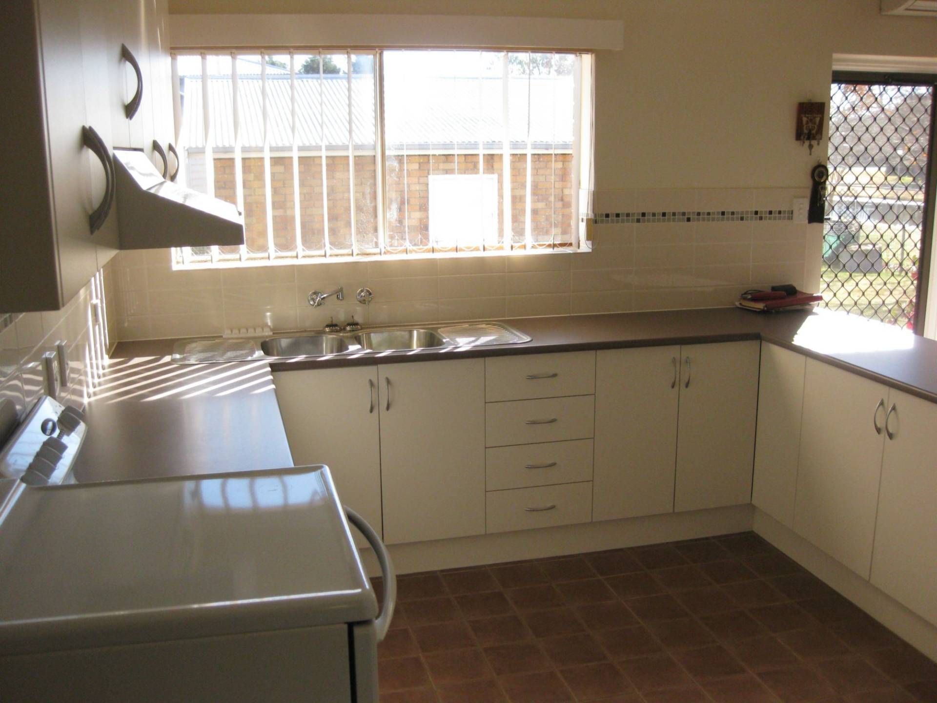 The spacious modern kitchen (just 6 years) has an adjoining dining area with air cond and the family laundry is separate.