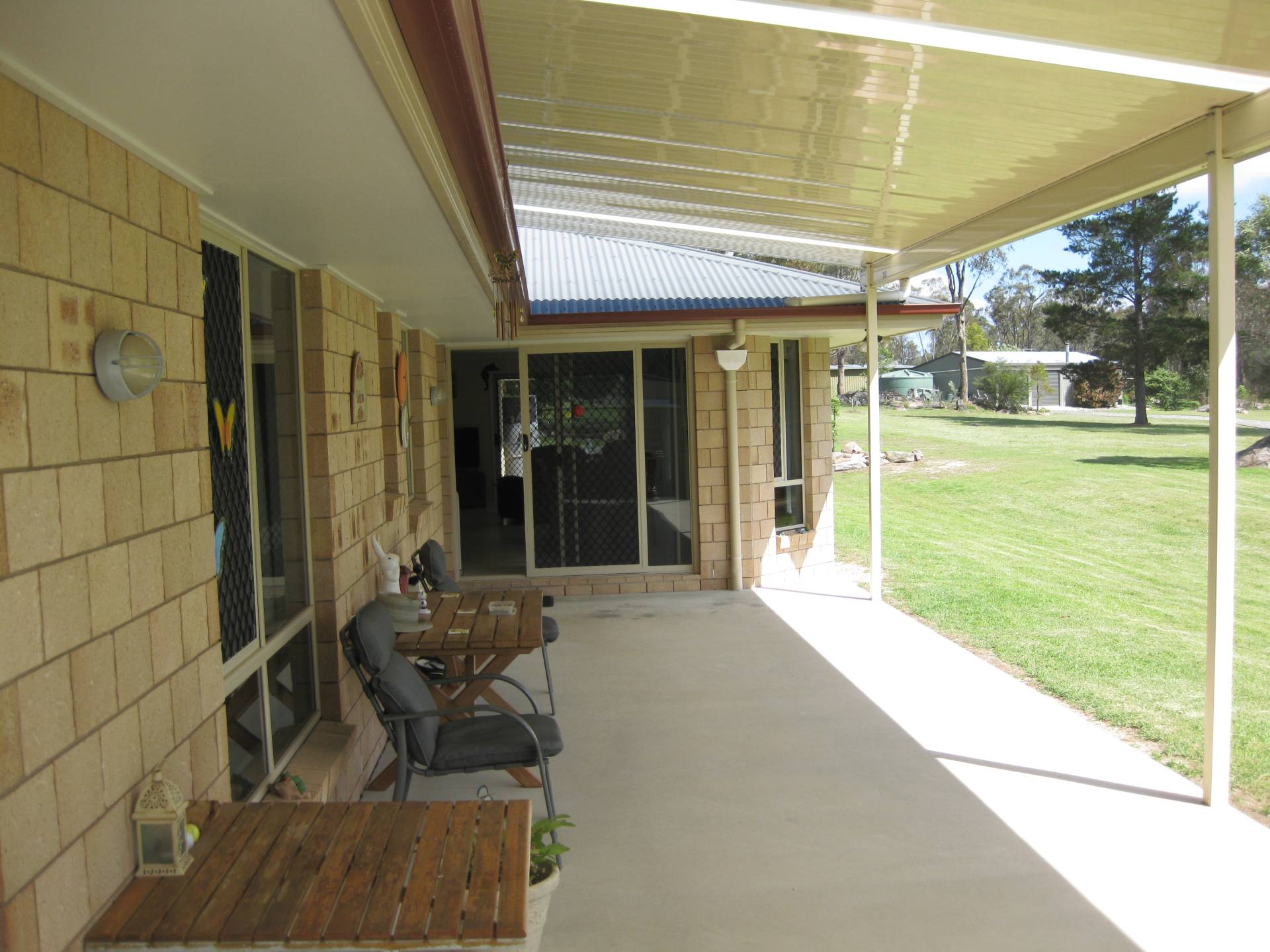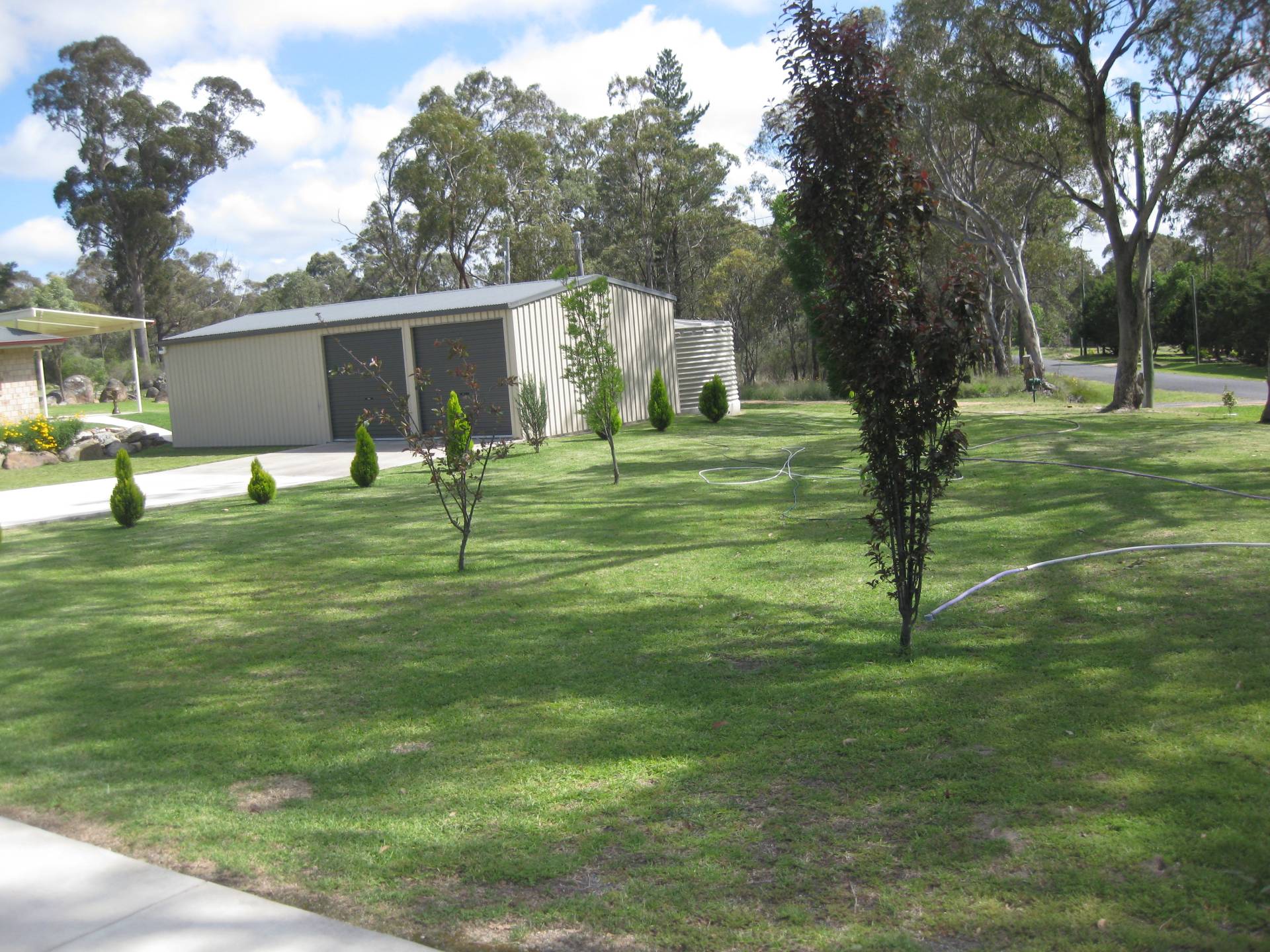 The large 2 bay powered Colorbond shed has a workshop PLUS there's a 3+ vehicle carport.