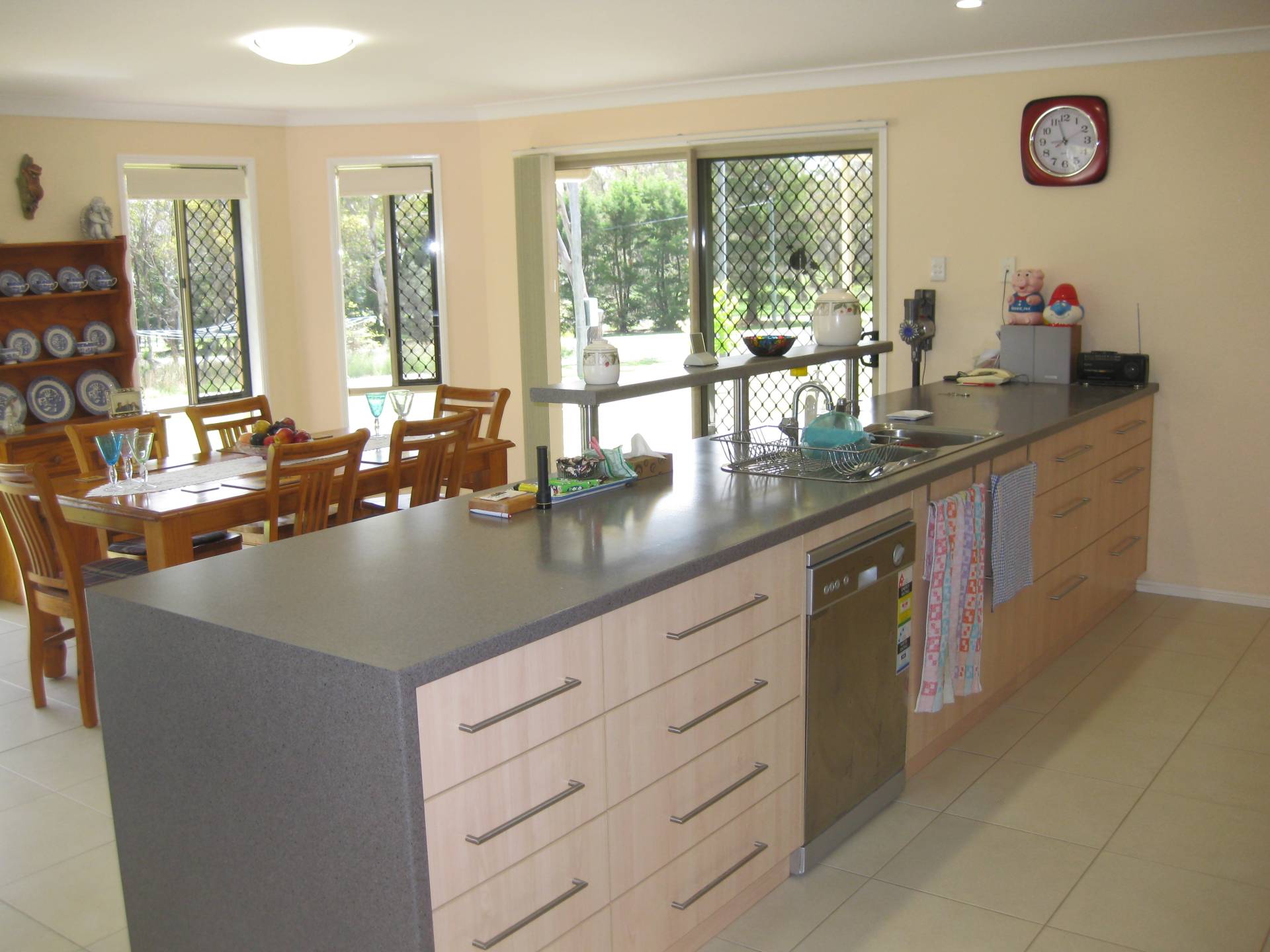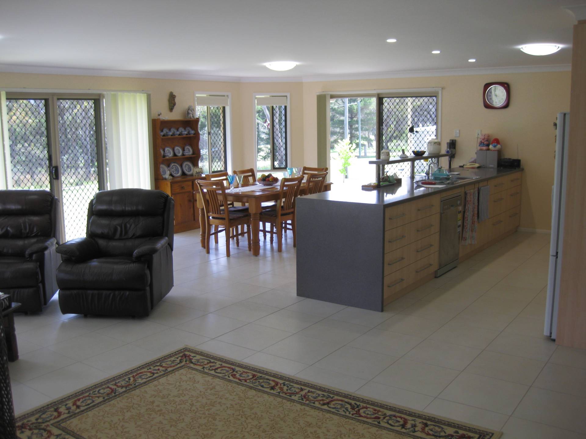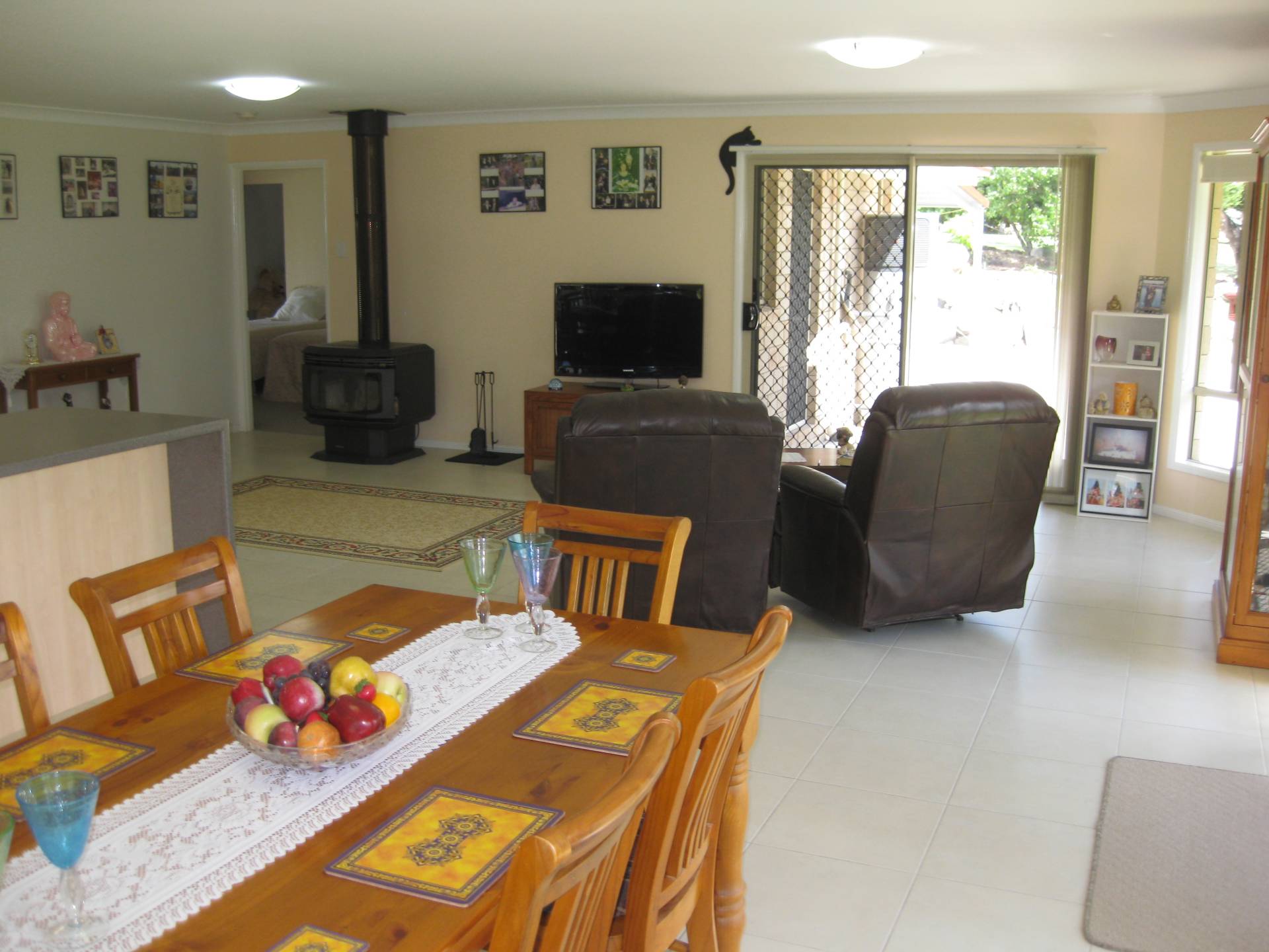 Enter via the welcoming foyer to a good size separate lounge PLUS an open plan generous size casual family area with effective wood heater, adjoining dining space and a well appointed kitchen with a 5 burner gas/electric cooker. The nearby covered outdoor area with N/E aspect is perfect all year for extra family gatherings overlooking the rolling lawns.