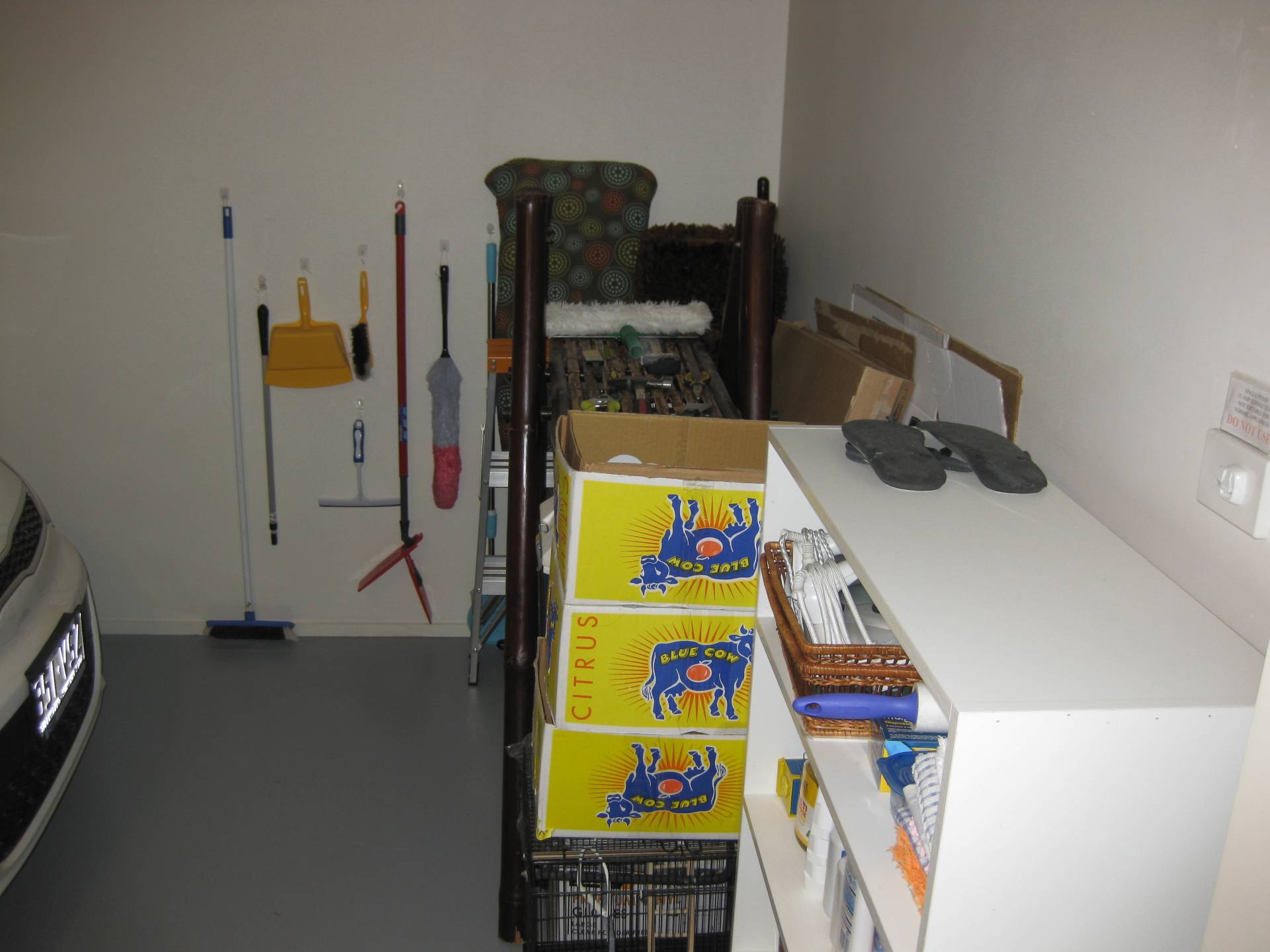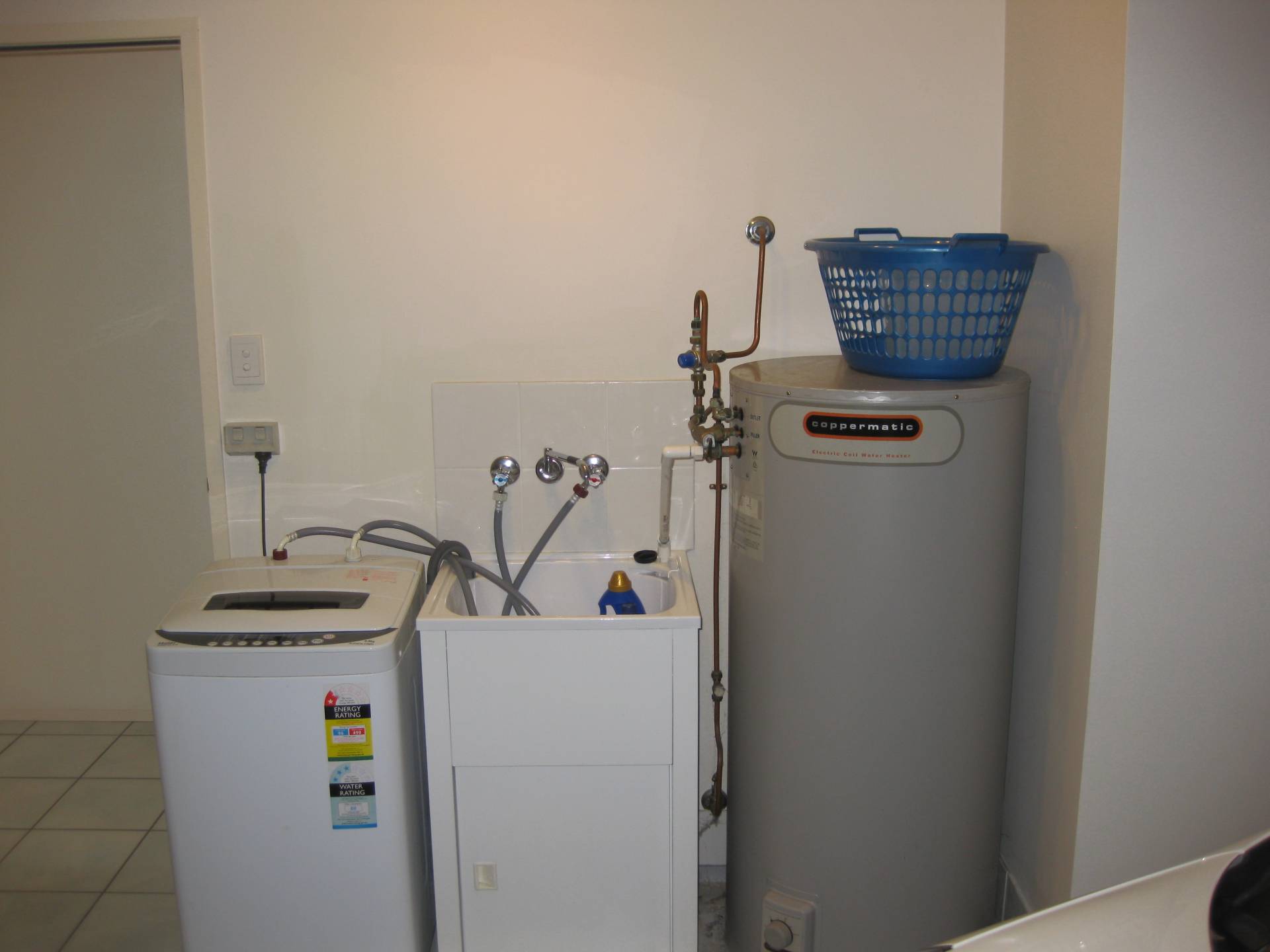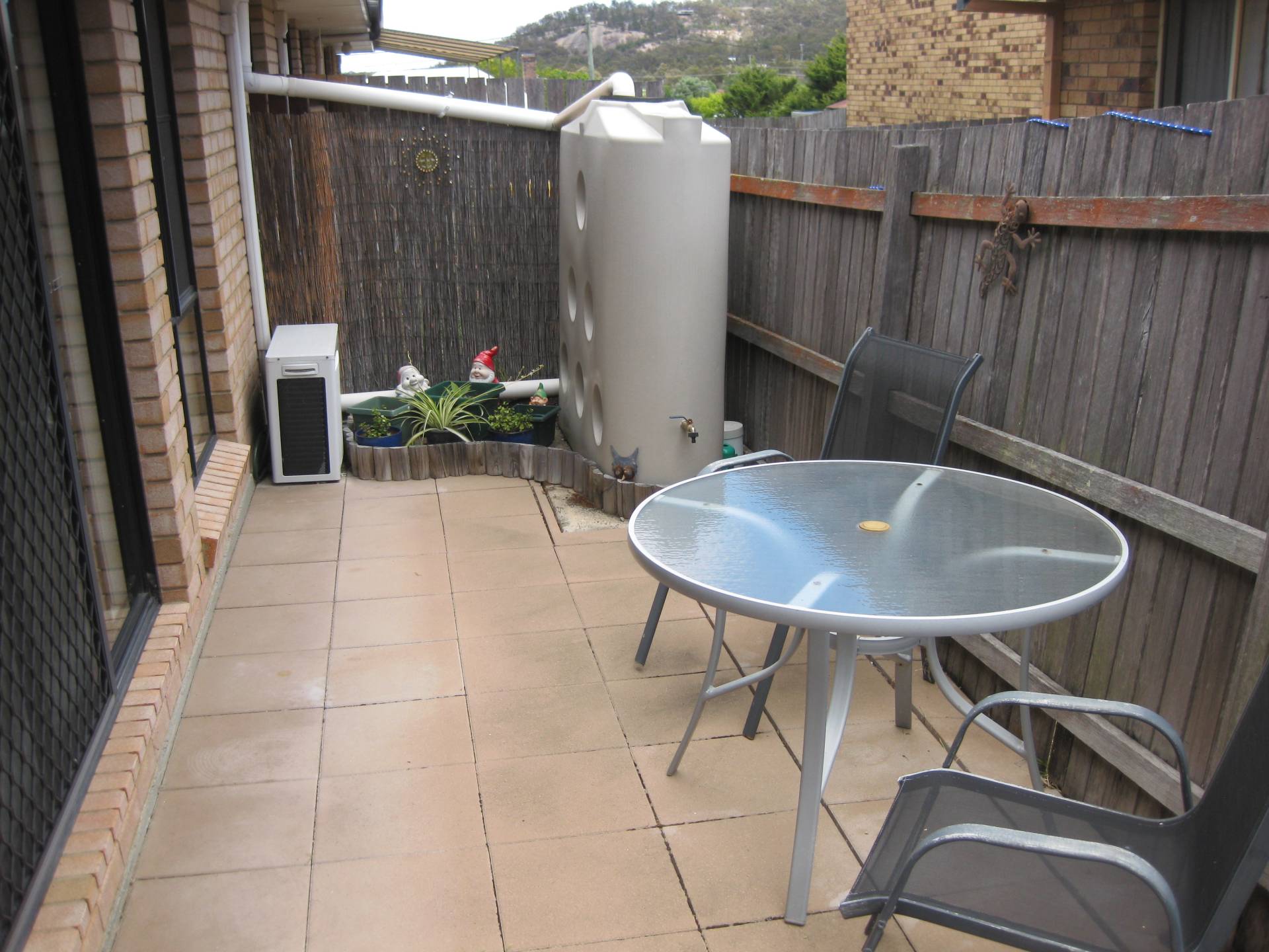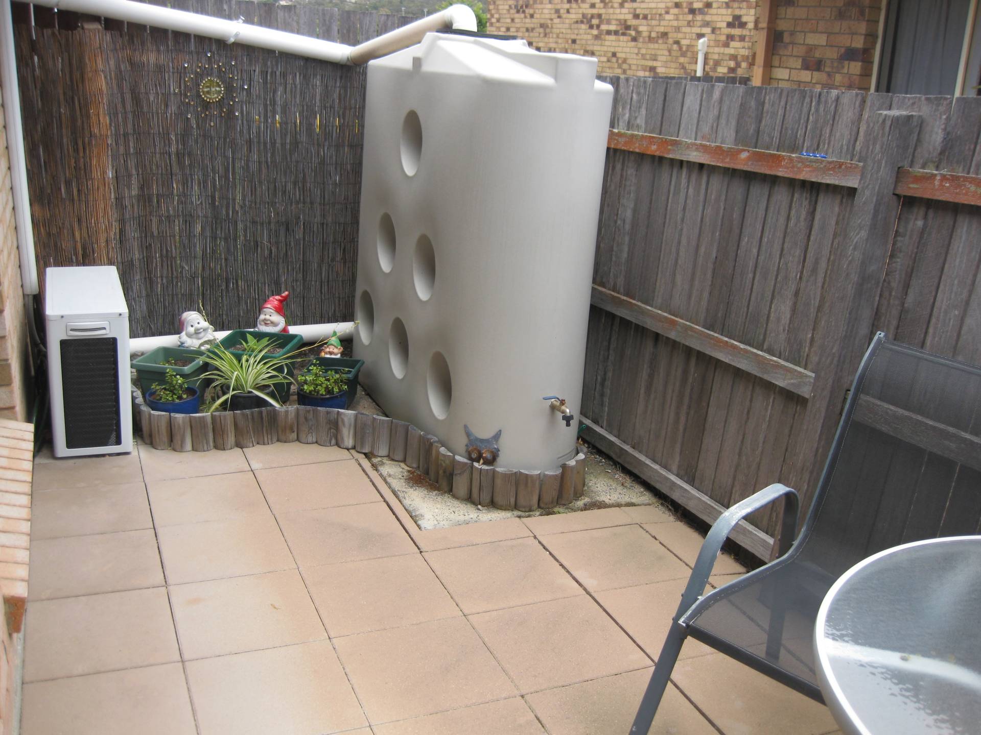There is a L/U garage and laundry space. The real bonus is that there is open land on one side of this unit which can be accessed from the courtyard... more space to use!  And there is a small tank which is gravity fed for pot plants and garden. This is the best and must be seen ...spot on presentation ...just walk in and sit down!