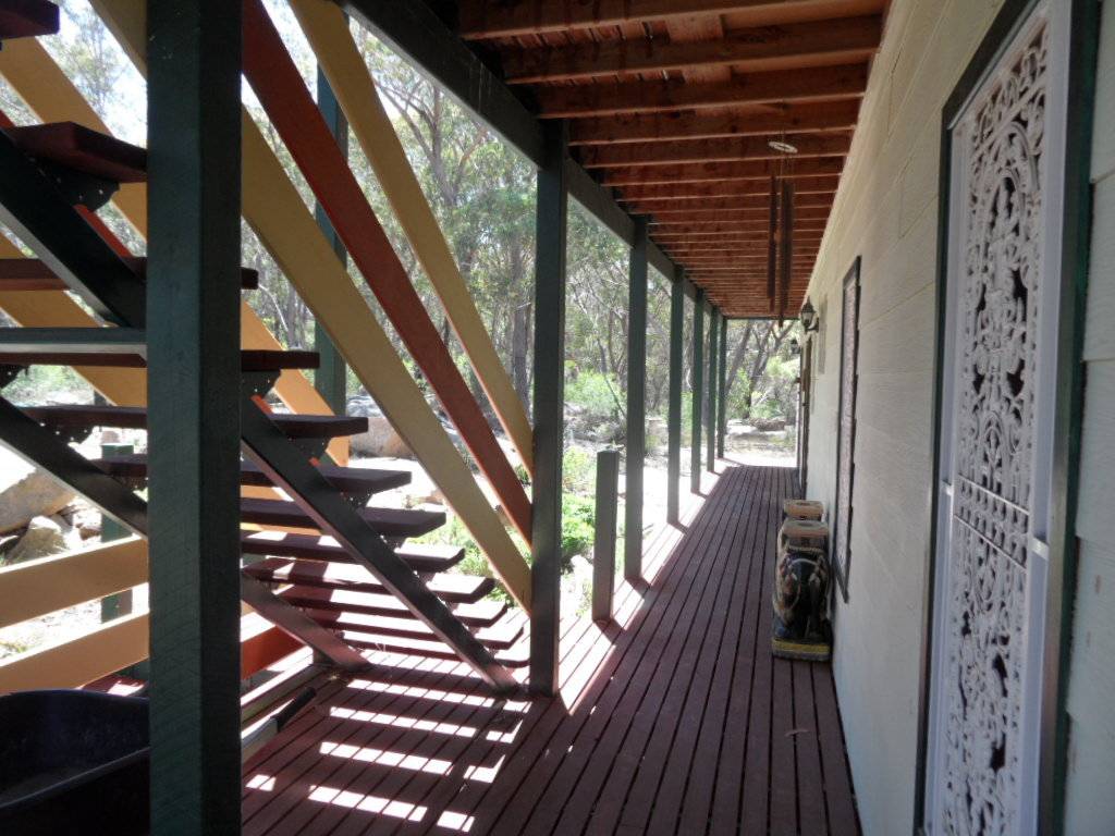 The main house has been constructed on on two levels. The ground level comprises 2 bedrooms one with massive bathroom, gym/entertainment room, Well being area including spa and massage rooms area plus massive shower area. Sauna capable of seating several people. Central heating in most areas. Verandas on 2 sides. The upper level also comprises 2 bedrooms one massive bathroom/ensuite. 2 living areas one with wood fired heater all rooms with central heating. Country style kitchen with 5 burner gas stove and combustion wood stove. Hot water is supplied from wood and solar and power is supplied from solar. Also having veranda's on two sides.