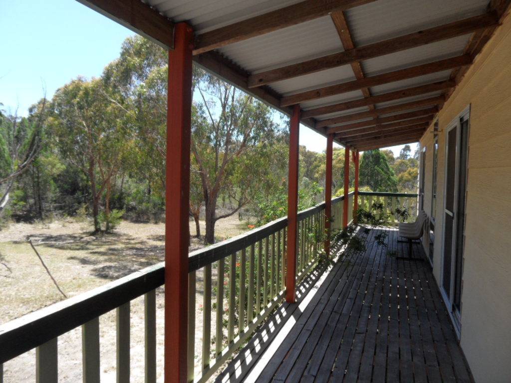 The second house comprises 3 bedrooms open plan living 2 bathrooms gas and wood stoves. Verandas on two sides. Both houses have composting toilets.