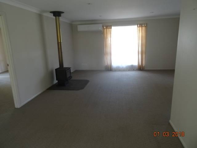 Large 4 bedroom home only a short drive from town.  4 bedrooms (2 with air conditioning), spacious ensuite and large open plan kitchen/dining area, spacious lounge room with wood heating and air conditioning, large garage and a good sized yard. Pets negotiable.