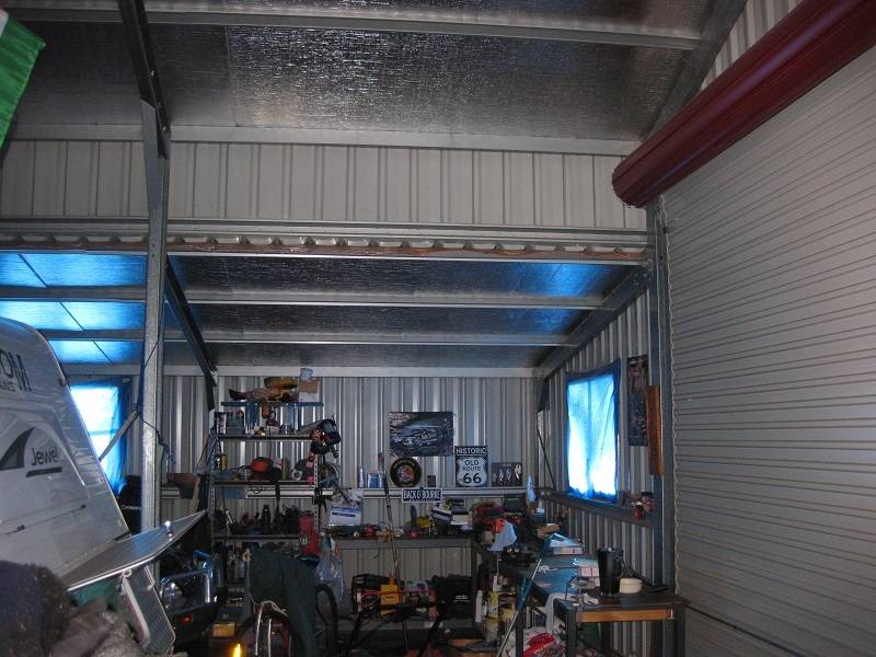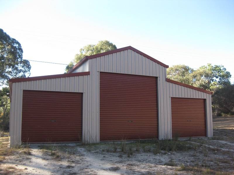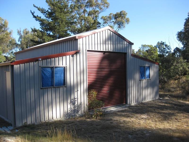 The nearby 10 x 9 American barn style 3 bay garage has high lift drive through for caravan and two other vehicle spaces plus workshop area. Full insulation - excellent condition.