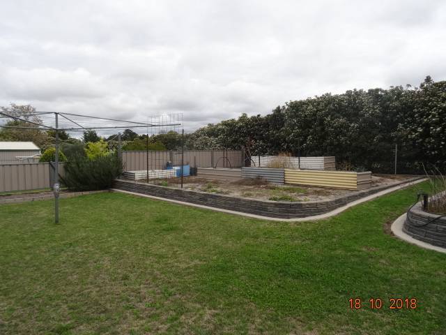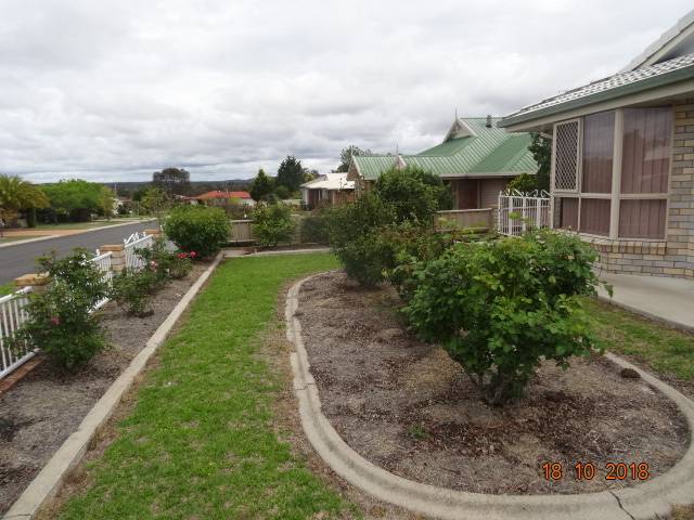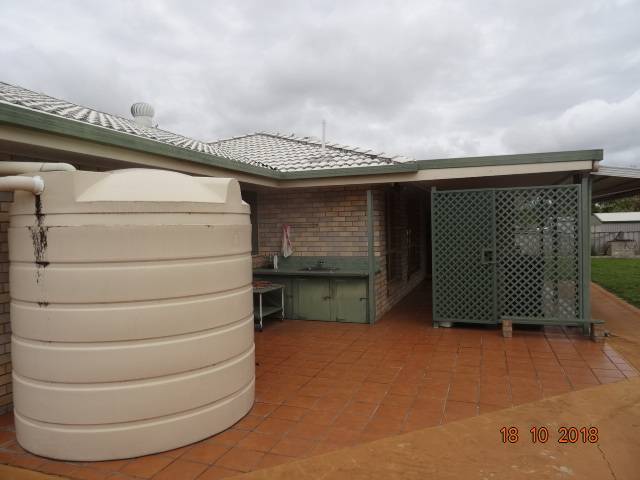 There is a delightful private N/E facing under cover patio area -  ideal for all year use.  There is a 1000 gallon tank attached to the house and a smaller tank collecting water from the two bay shed and a bore with pump.  There are also two raised garden beds in the back yard containing established fruit trees - cherry, nectarine and fig - and plenty of space to set up your own very productive vege garden. The property has beautiful established rose gardens set on easy care 1026m2.  There is a single garage with remote controlled door attached to the house, two bay lockup shed and another smaller lawn locker behind the shed to store all your gardening tools.  The property is fully screened with security screens on all windows and doors.