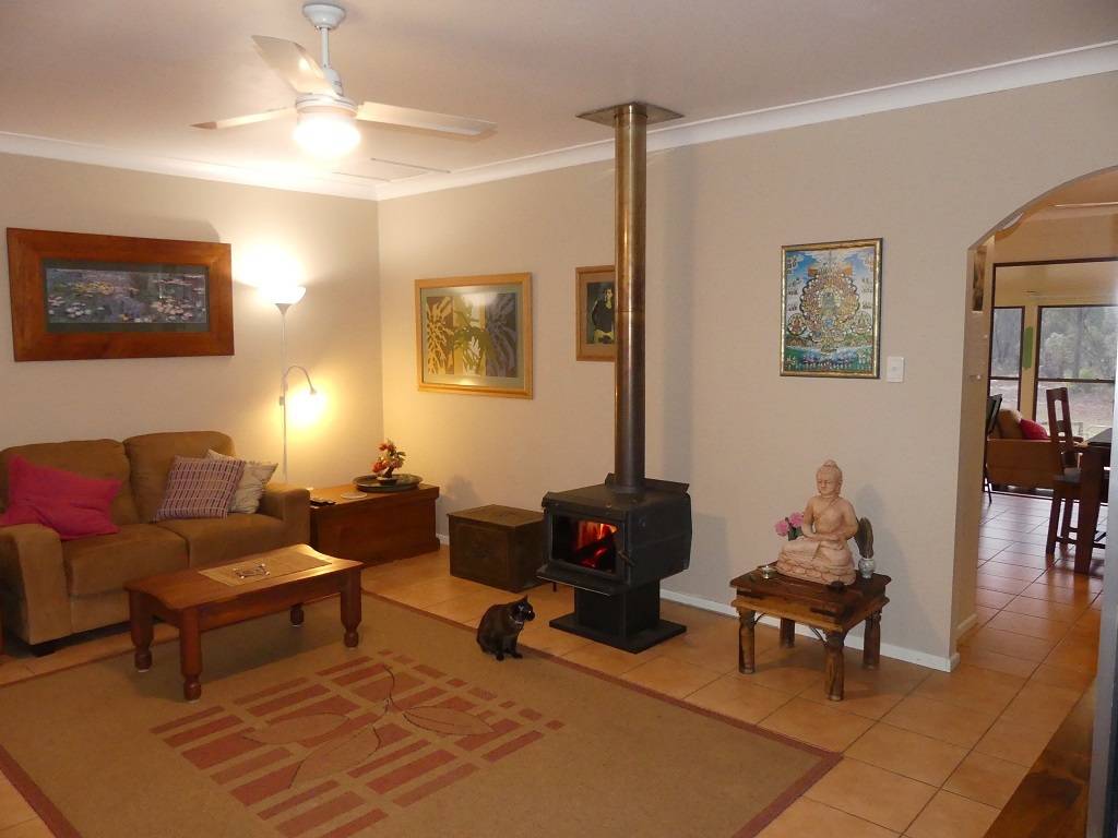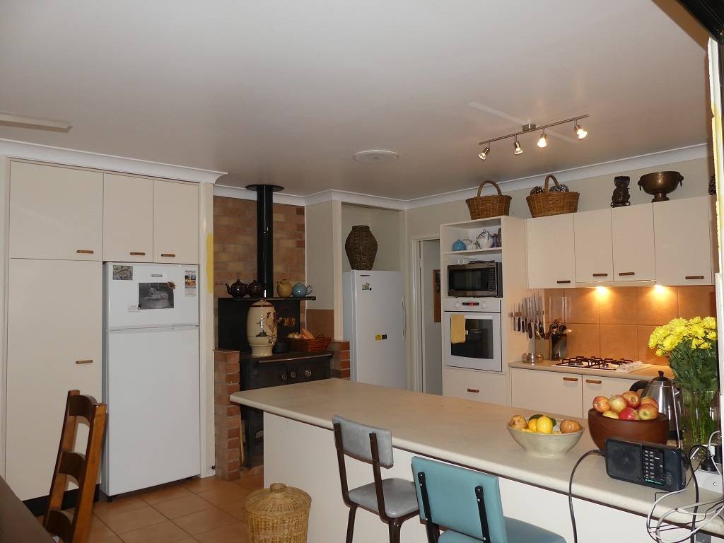 The home comprises 3 bedrooms, living room with cosy wood fired heater, open plan kitchen dining area with gas cook top electric oven plus wood stove which can even heat water if needed, two way bathroom. Just off the dining area is a stunning north facing Sunroom/Living room. The front entry area of the house also has a generous covered patio.