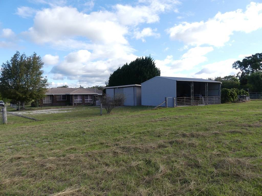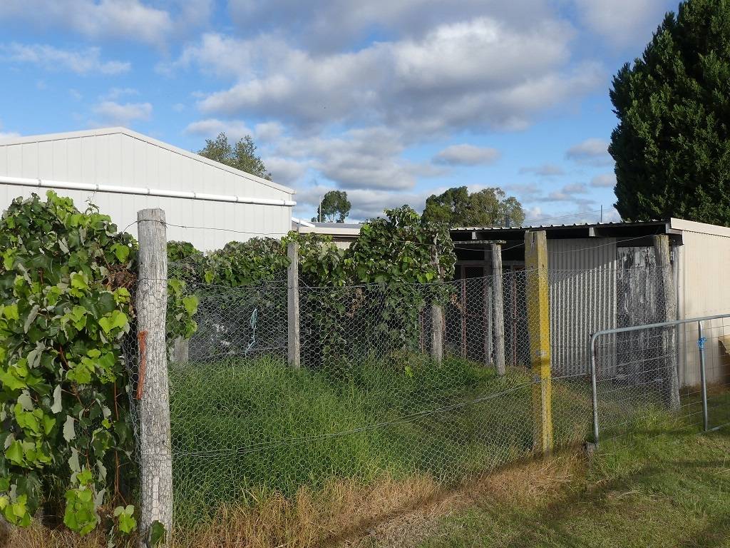 The land is fully fenced, level and ready for use. Water is supplied from Town - plus approximate 54,000 litre rain water tank, well plus dam both have power connected. Includes Chook runs, dog runs and bird cage for Budgies.