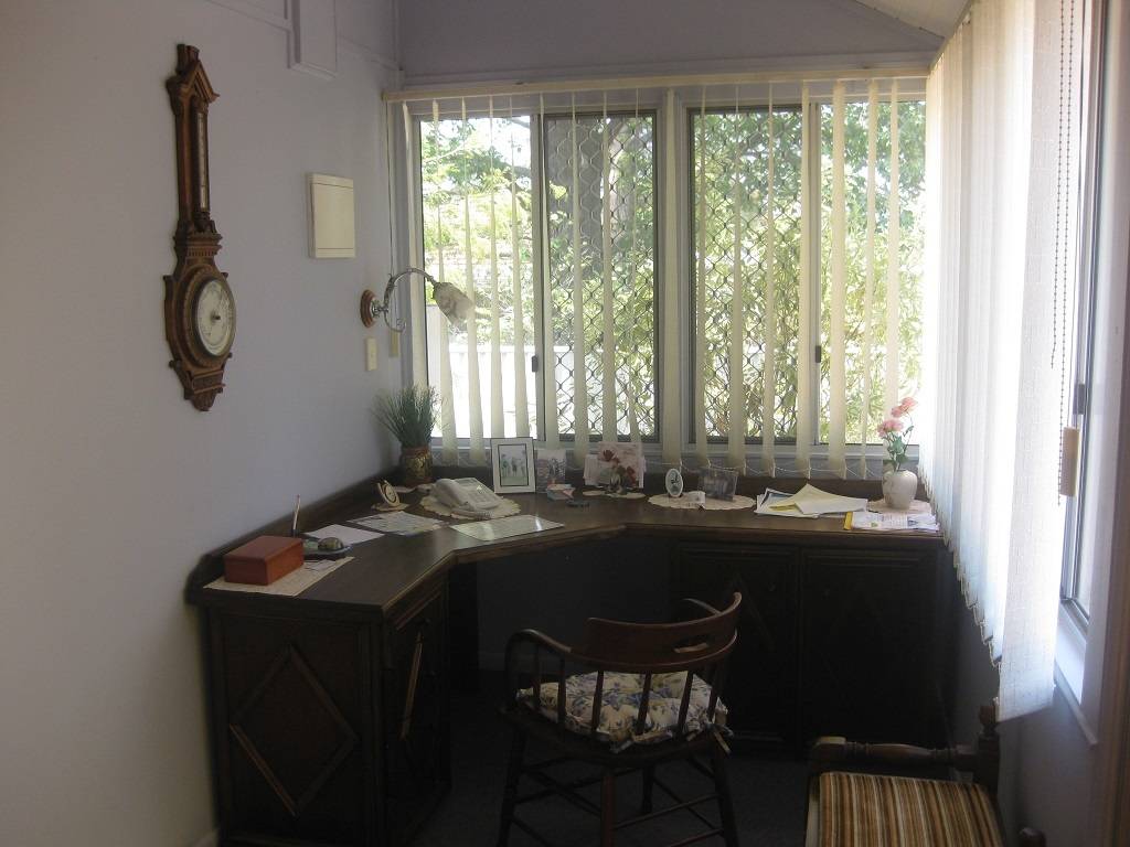 There is a very pleasant sun filled family room and a nearby study which give this home extra rooms for various family members to use and enjoy. A real bonus is the delightful undercover patio/casual living area at the rear ..great all year....ideal for BBQ's... very private and overlooking the peaceful large back gardens and shrubs. The hot water is from an Evacuated Tubes system and there is a 5,000 litre gravity fed tank for garden use plus town water, sewerage connected and rubbish collection - all town services! The property has very good facilities for 3 vehicles - one garage with remote controlled door and direct internal access to the home plus a very sturdy 2 bay shed (6 x 6) ...also a garden shed.